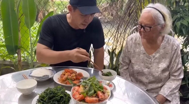 Trung Dũng thường xuyên về quê nấu ăn cho người mẹ gần 90 tuổi.