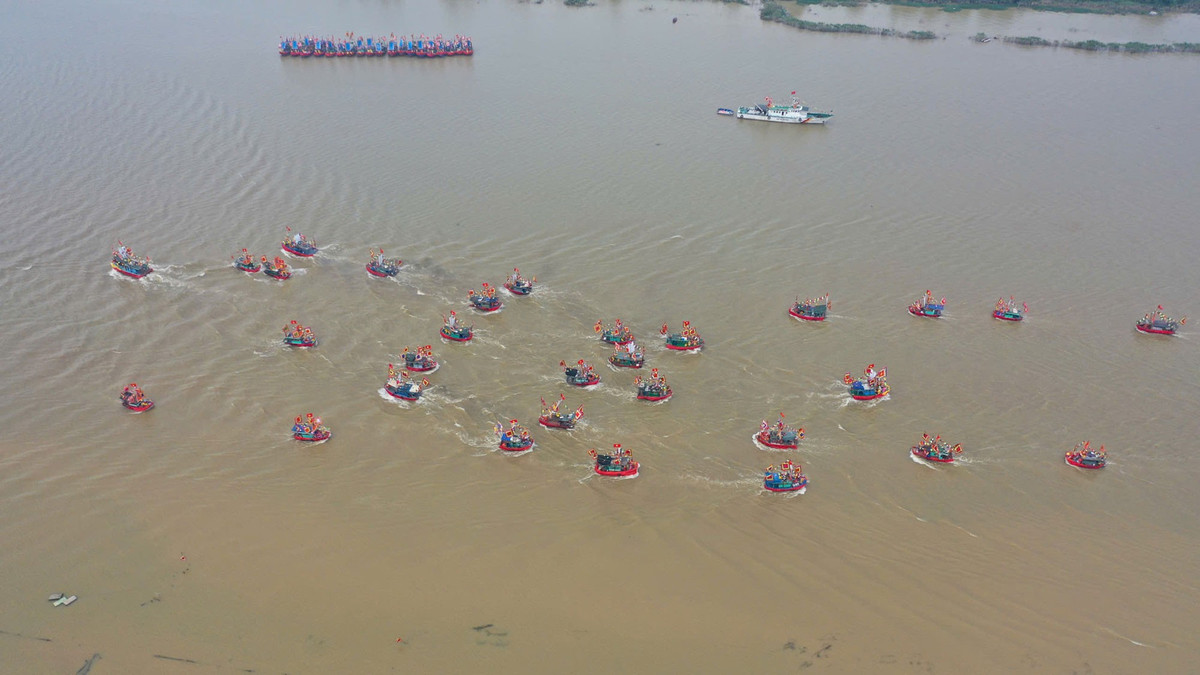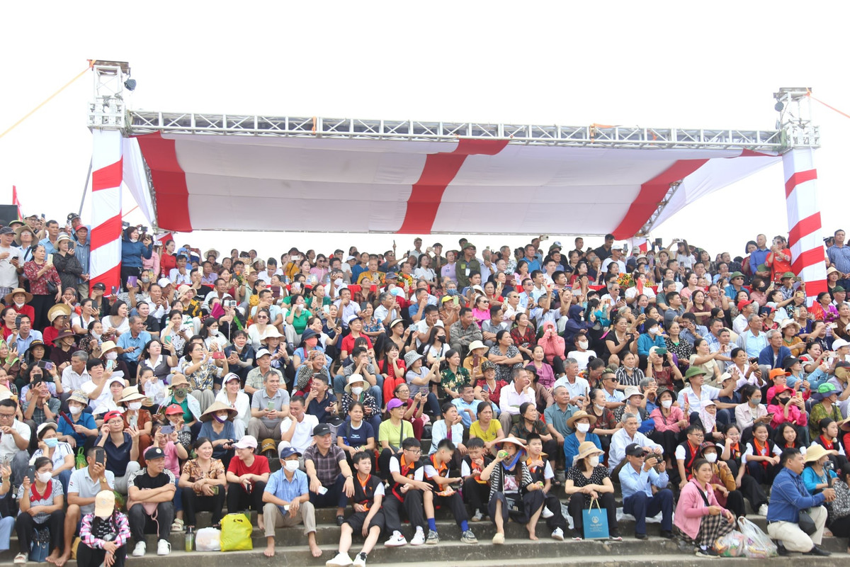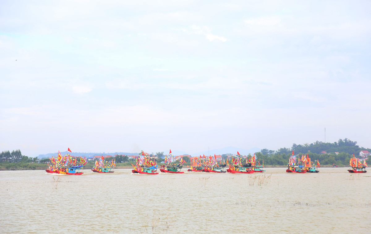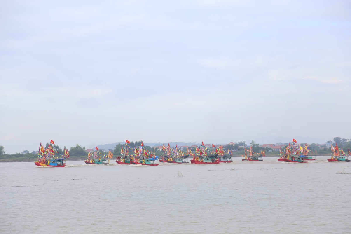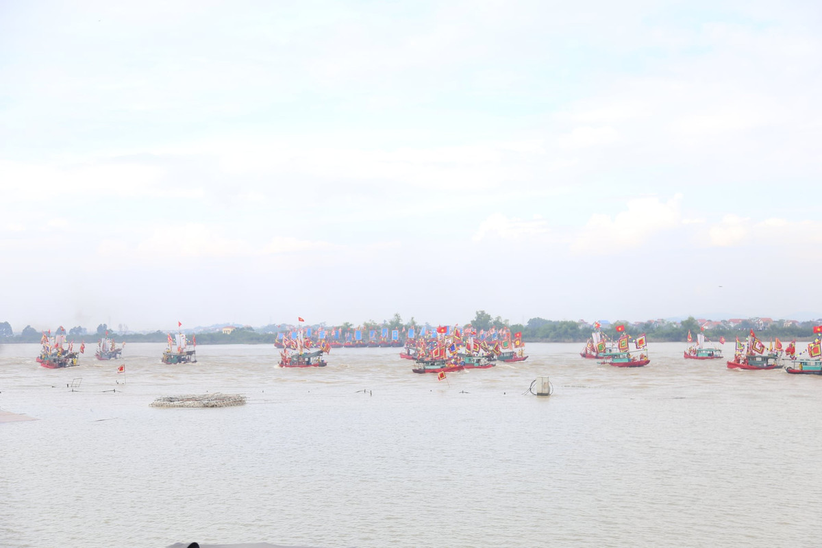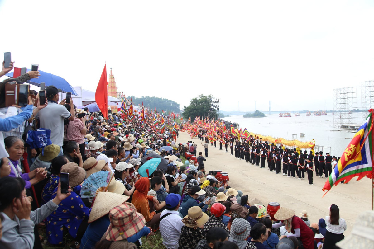 Dưới sông Lục Đầu Giang, 50 chiếc thuyền của ngư dân đến từ Hải Phòng, Quảng Ninh được trang hoàng rực rỡ. Pháo hiệu vang lên, hai đoàn thuyền từ vị trí xuất phát tiến về quãng sông chính giữa lễ đài và giao nhau 3 lần gắn với 3 chủ đề lần lượt là: “Hào khí Đông A”, “Hùng khí Lục Đầu”, “Ca khúc khải hoàn”. Gắn với mỗi chủ đề, trên bờ các đội rồng, lân, đội võ, đội gậy lại biểu diễn theo đúng ý tưởng cốt lõi của chủ đề đó.