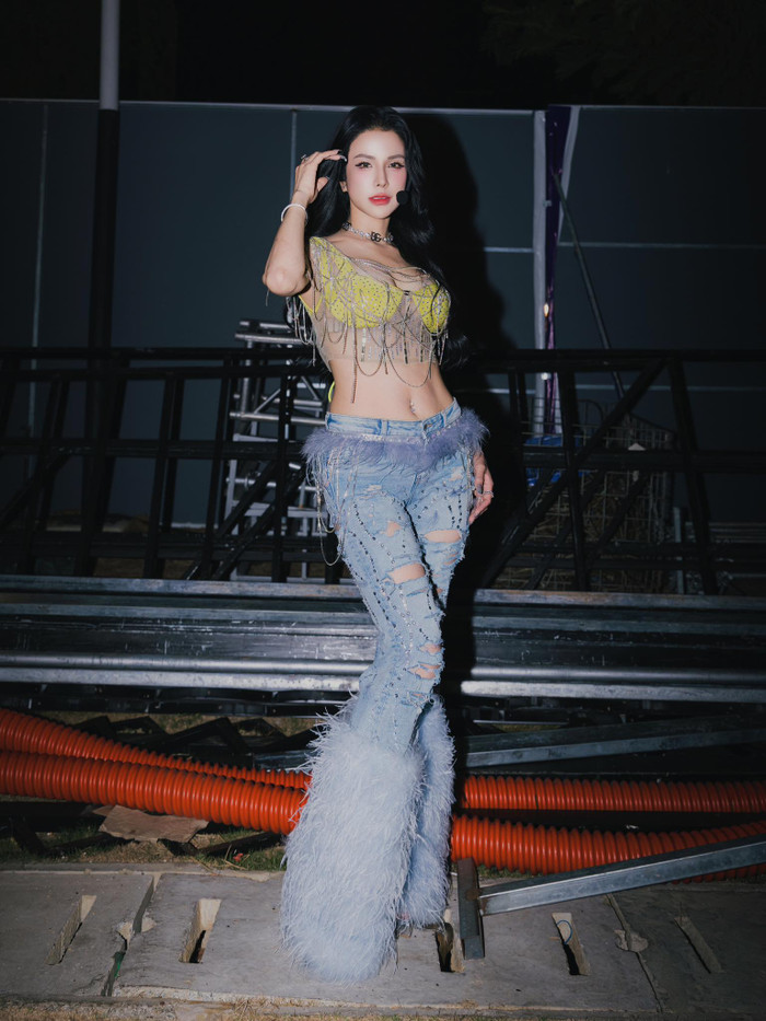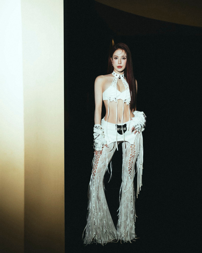 Không chỉ dừng lại ở kiểu dáng cơ bản, Diệp Lâm Anh còn biến hóa linh hoạt với nhiều chất liệu và màu sắc, từ crop top thể thao năng động, áo thun trơn đơn giản đến các thiết kế cúp ngực, cut-out gợi cảm. Sự phối hợp khéo léo giúp cô giữ được vẻ trẻ trung, hiện đại nhưng không phô trương.