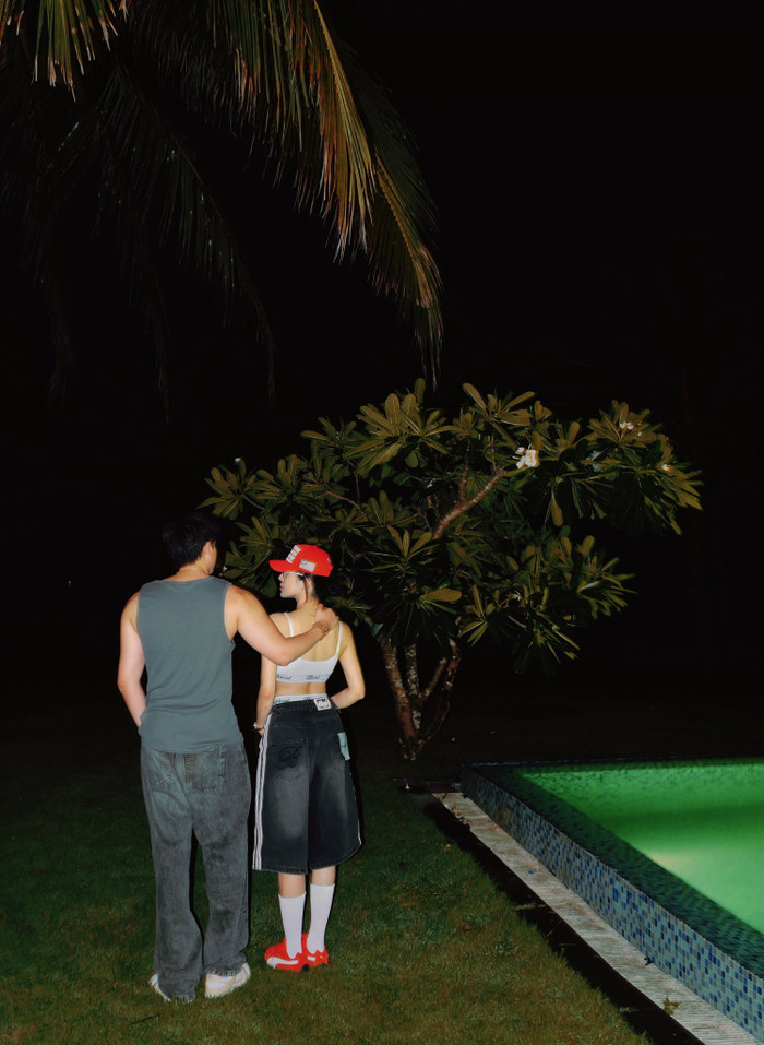 Khoảnh khắc chụp ảnh cùng bạn trai, Diệp Lâm Anh chọn chiếc áo crop top kết hợp quần ống rộng, vừa năng động trẻ trung, vừa quyến rũ. (Ảnh FBNV)
