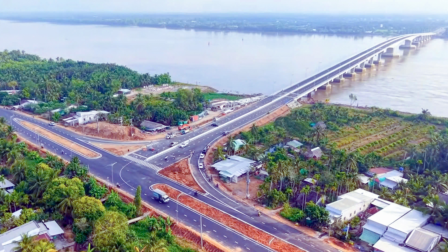 Tính đến tháng 3-2026, lũy kế sản lượng toàn dự án đạt hơn 67,6%. Trong đó, gói thầu số 11-XL (thi công cầu Đại Ngãi 2, tuyến và các công trình trên tuyến) đạt hơn 87% và gói thầu số 15-XL (thi công cầu Đại Ngãi 1) đạt gần 59%.