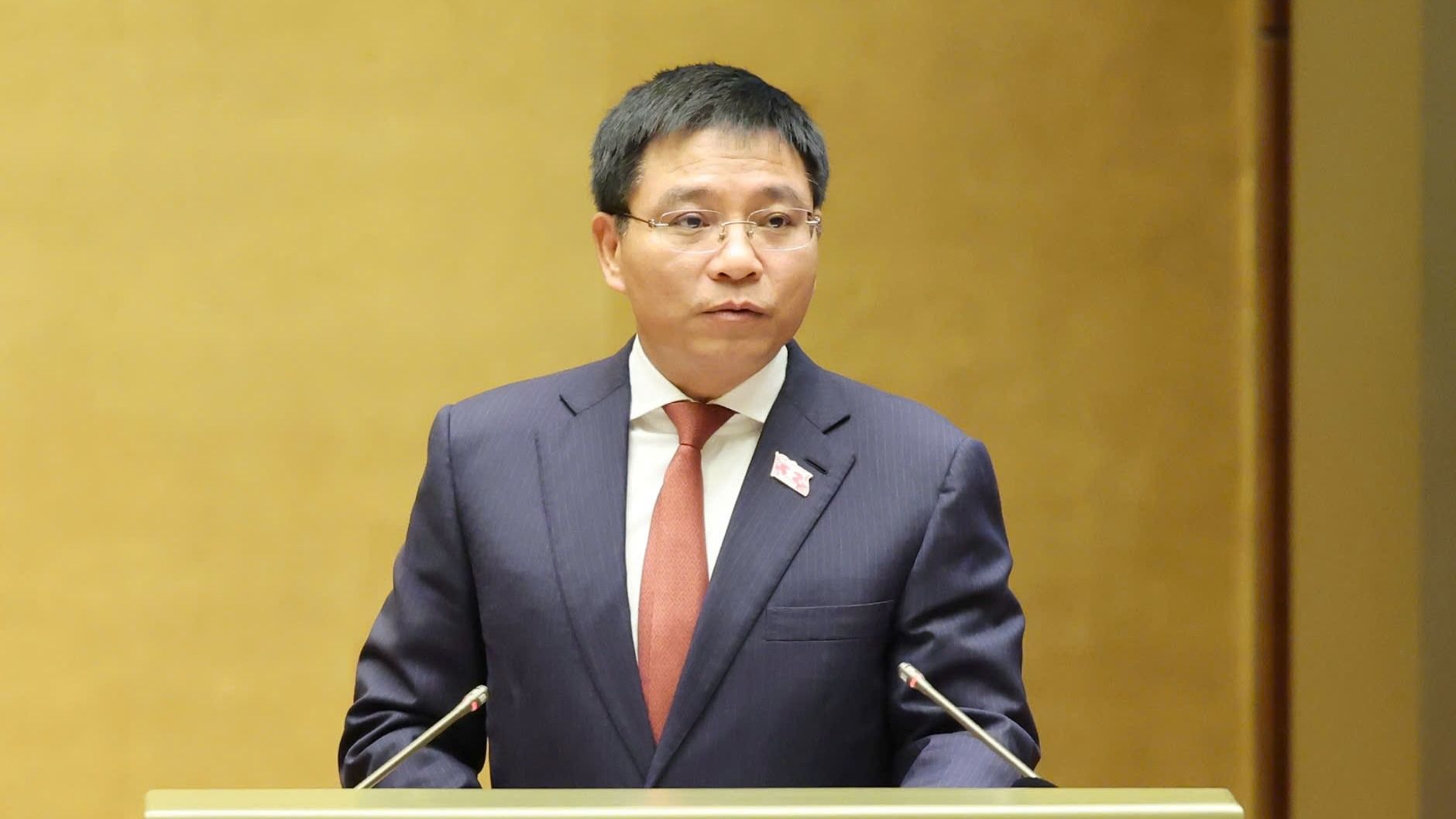 Bộ trưởng Bộ Tài chính Nguyễn Văn Thắng trình bày tờ trình về các dự án luật, sáng 4-11. Ảnh: QUANG PHÚC
