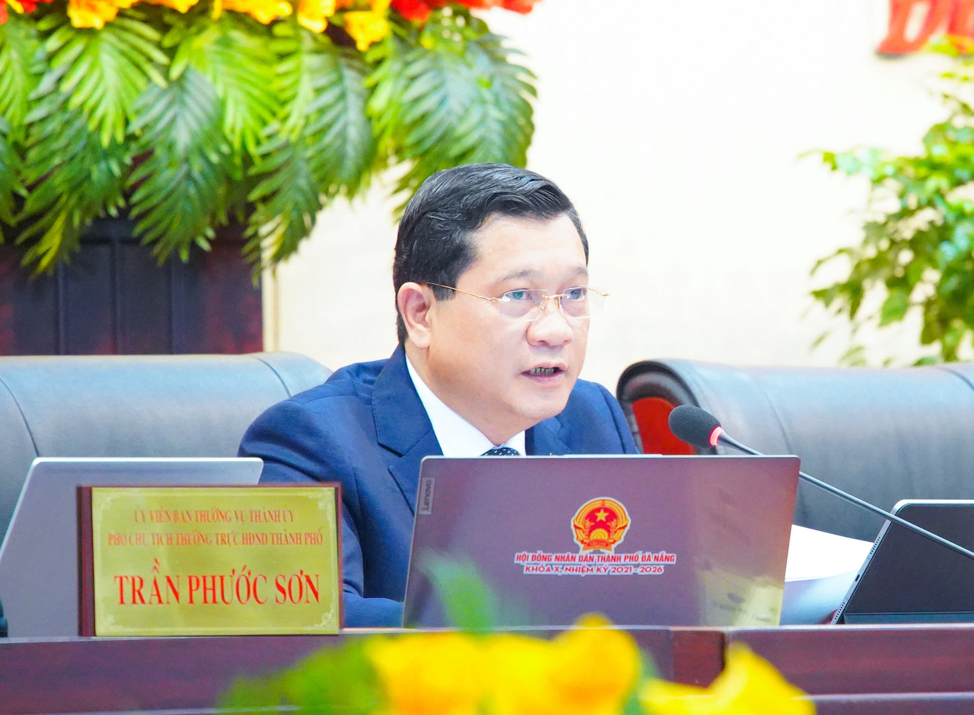 Phó Chủ tịch Thường trực HĐND thành phố Trần Phước Sơn phát biểu tại kỳ họp.