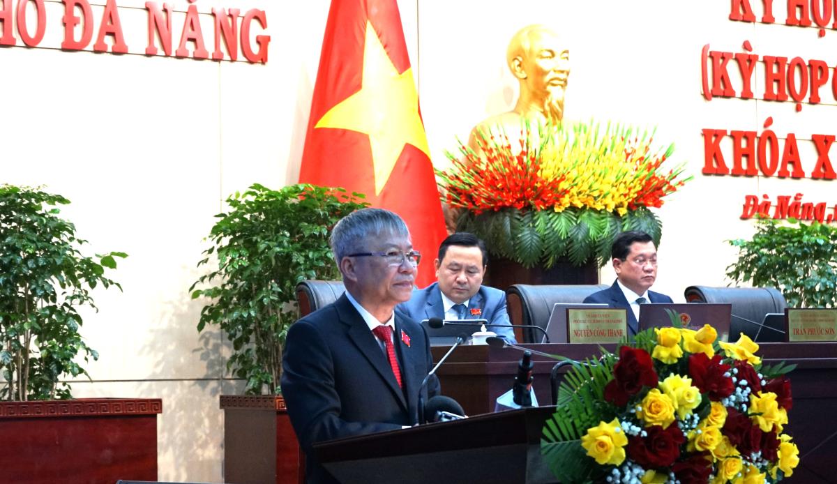 Ông Nguyễn Đức Dũng - Phó Bí thư Thành ủy, Chủ tịch HĐND thành phố Đà Nẵng phát biểu tại kỳ họp.