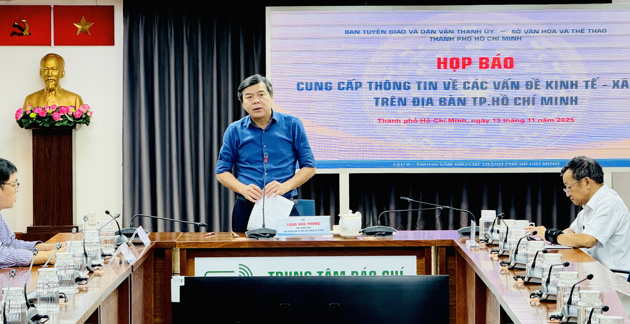 Cuộc họp báo do ông Tăng Hữu Phong, Phó Trưởng Ban Tuyên giáo và Dân vận Thành ủy TPHCM chủ trì chiều 4-12. Ảnh: ĐÌNH DƯ