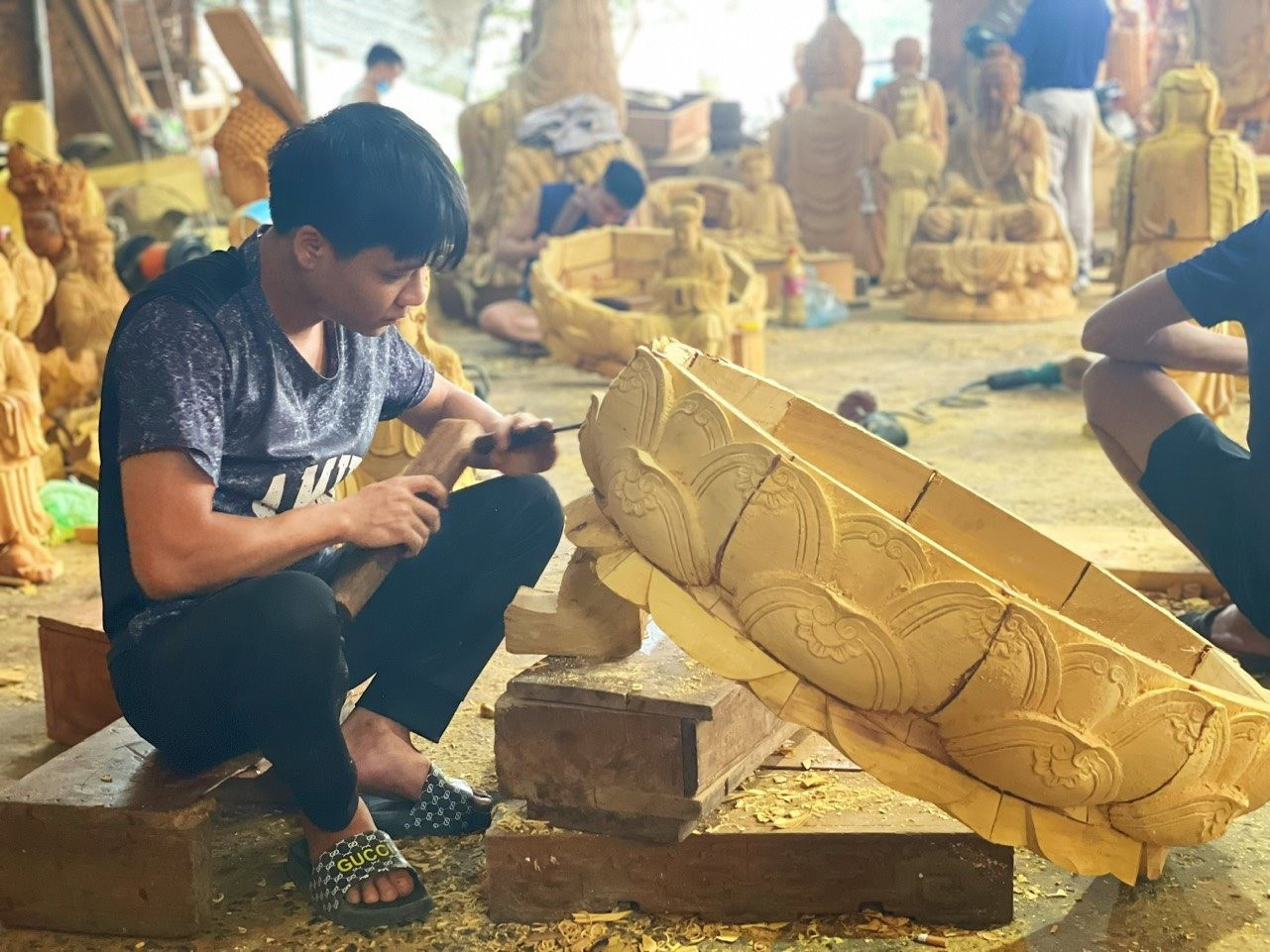 Hiện nay, nhiều xưởng trong làng hoạt động như những “công trường nghệ thuật” nhỏ. Hàng trăm pho tượng lớn nhỏ được đặt khắp sân, chờ hoàn thiện trước khi chuyển tới các chùa, đình, đền khắp cả nước.