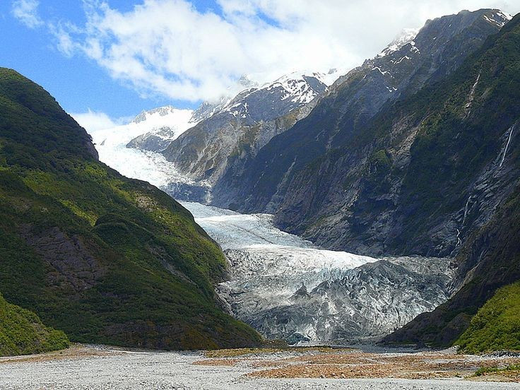 Có nhiều dòng sông băng cổ đại. Franz Josef và Fox là hai sông băng hiếm hoi của thế giới tiến sát rừng mưa ôn đới. Ảnh: Pinterest.