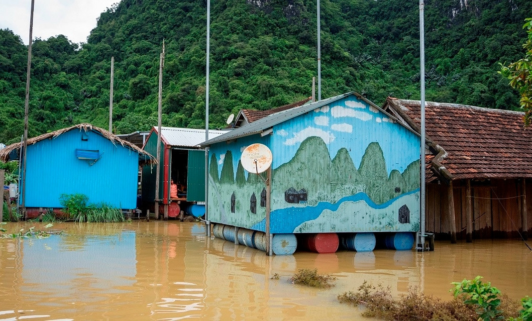Người dân sinh hoạt trên nhà phao trong những ngày mưa lũ. Ảnh: Oxalis