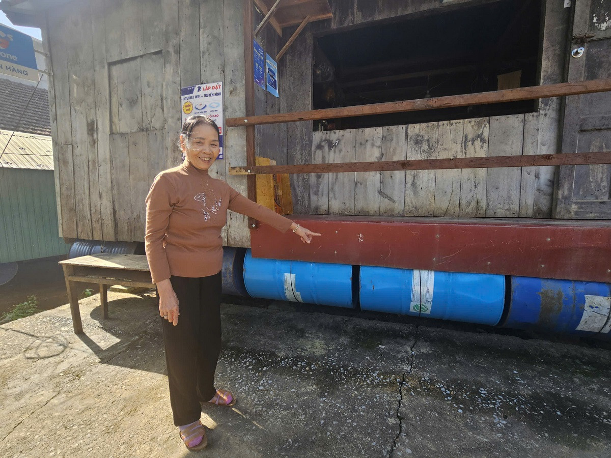 Là một trong những hộ đầu tiên ở Tân Hóa (cũ) làm nhà phao, bà Đào cho biết: "Chúng tôi dựng căn nhà này để bán hàng tạp hóa. Dưới nhà có 50 thùng phuy, chịu được trọng tải khoảng 5 tấn. Nước lên thì nhà nổi, nước rút nhà cũng từ từ hạ xuống; nhiều khi ở trong nhà suốt mùa lũ cũng không hay nước đang lên hay xuống".