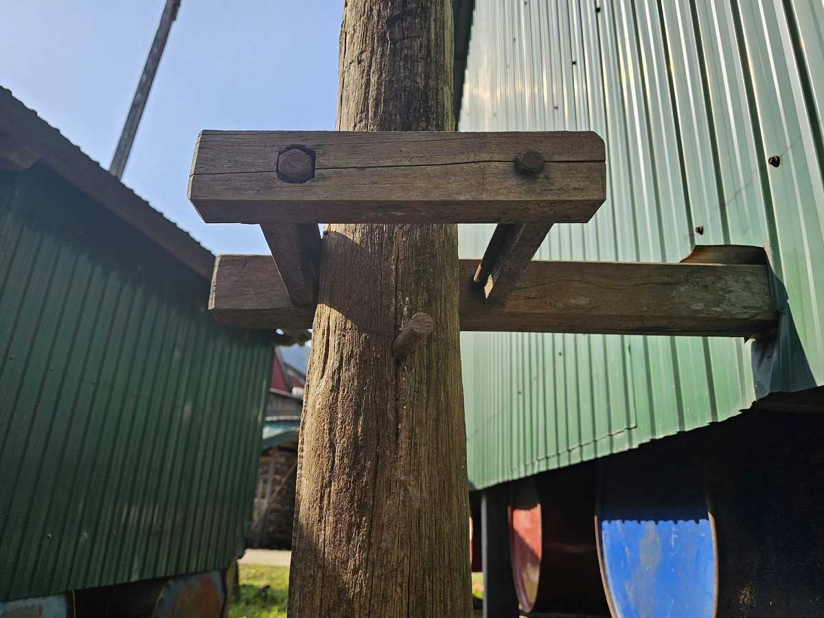 Quan trọng nhất là hệ thống phao nổi: các thùng phuy sắt rỗng hoặc can nhựa lớn được đan kết dưới gầm sàn, tạo lực nổi giúp toàn bộ căn nhà nâng lên theo mực nước lũ.
