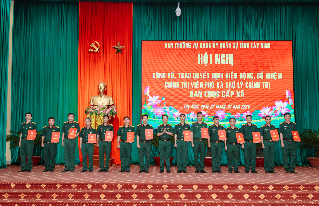 Trong đó, 12 quyết định điều động giữ chức trợ lý chính trị Ban Chỉ huy Quân sự xã, phường và 29 quyết định bổ nhiệm giữ chức Chính trị viên phó Ban Chỉ huy Quân sự xã, phường.