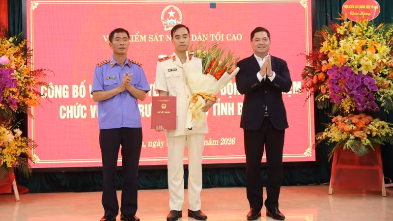 Tại buổi lễ, đại diện Viện Kiểm sát nhân dân tối cao đã công bố quyết định của Viện trưởng Viện Kiểm sát nhân dân tối cao về điều động, bổ nhiệm đồng chí Phạm Hải Anh, Kiểm sát viên trung cấp, Phó Chánh Văn phòng Viện Kiểm sát nhân dân tối cao giữ chức vụ Viện trưởng Viện Kiểm sát nhân dân tỉnh Bắc Ninh. Thời hạn bổ nhiệm 5 năm, kể từ ngày 1/4/2026.