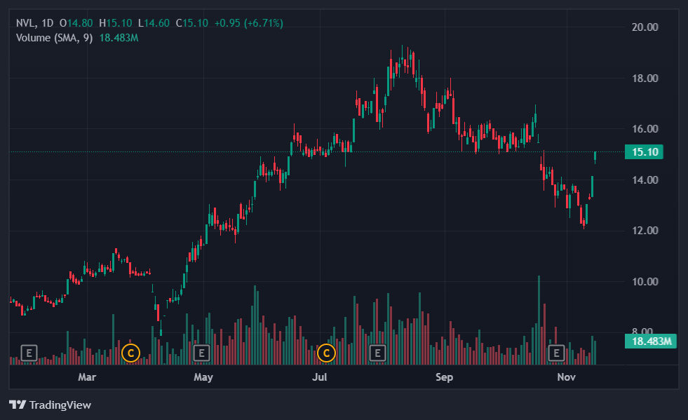 Cổ phiếu NVL tăng hơn 25% trong vòng một tuần. Ảnh: TradingView.