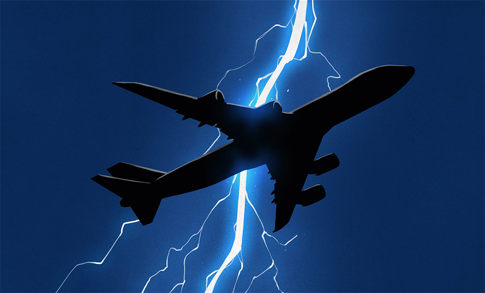 Giữa những tầng mây dày đặc, máy bay đang lướt nhẹ thì bất ngờ bị sét đánh. Phi công vẫn điềm tĩnh, tiếp tục điều khiển như không có gì xảy ra.