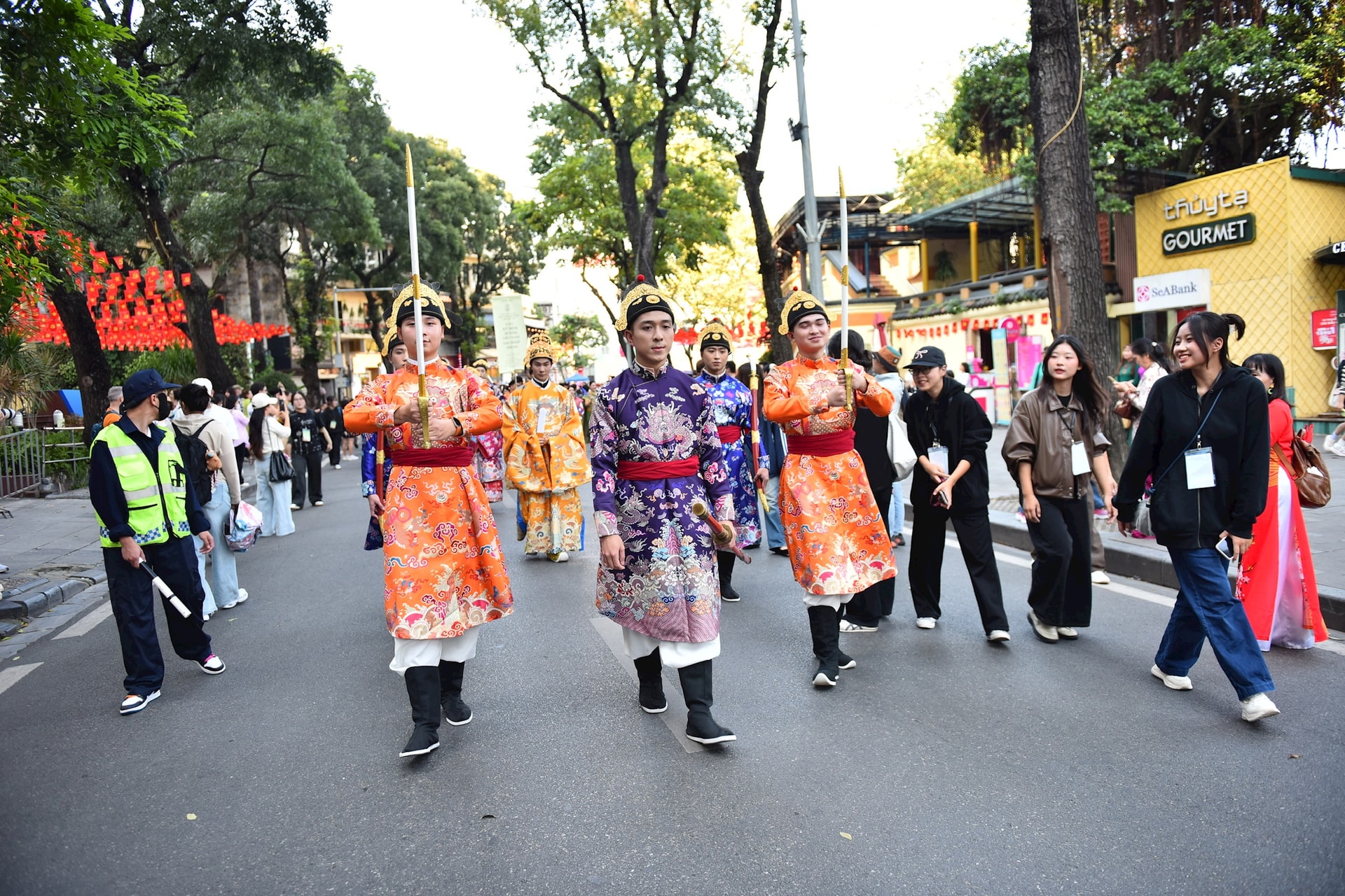 Chiều 15/11, trong không gian phố đi bộ hồ Hoàn Kiếm, hoạt động diễu hành áo dài với quy mô lớn, có sự tham gia của 1.400 người đã thu hút nhiều người dân và du khách. Đây là sự kiện khép lại Lễ hội Áo dài Du lịch Hà Nội 2025, đồng thời tôn vinh di sản áo dài Việt, góp phần tăng sức hút của du khách đến với Thủ đô.
