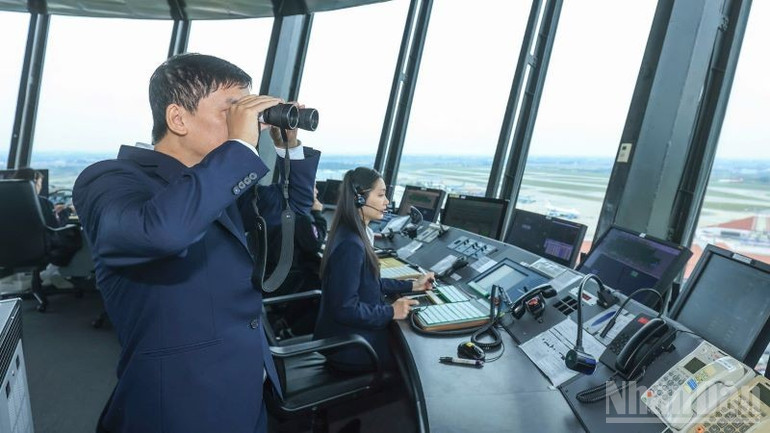 “Bán kính điều hành Tiếp cận có nhiệm vụ điều phối hoạt động bay trong vòng bán kính 70km từ tâm sân bay Nội Bài và Cơ sở kiểm soát tại sân chịu trách nhiệm điều hành bay trong vòng bán kính hơn 10km. Kiểm soát viên không lưu phải làm nhiệm vụ 24/24 giờ, mỗi ca làm việc của kíp trực tiếp cận gồm 8 người, đài chỉ huy 12 người. Trong khu vực tiếp cận do trung tâm kiểm soát, bình quân sẽ có 7-8 tàu bay nối đuôi nhau và cứ khoảng 2,5 phút sẽ có 1 chuyến bay hạ cánh. Nếu mật độ dày hơn, các tàu bay khác buộc phải bay vòng chờ để bảo đảm độ giãn cách đã được quy định”, ông Bế Ngọc Dương chia sẻ.