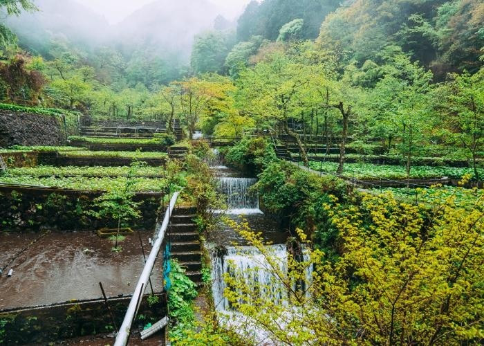 Các tỉnh Nagano, Iwate và Shimane nổi tiếng với sản lượng wasabi nội địa tại Nhật Bản. Tuy nhiên, vùng bán đảo Izu thuộc tỉnh Shizuoka mới là nơi trồng wasabi chính, sản xuất khoảng 70% sản lượng wasabi của Nhật Bản. Ảnh: Tasteatlas