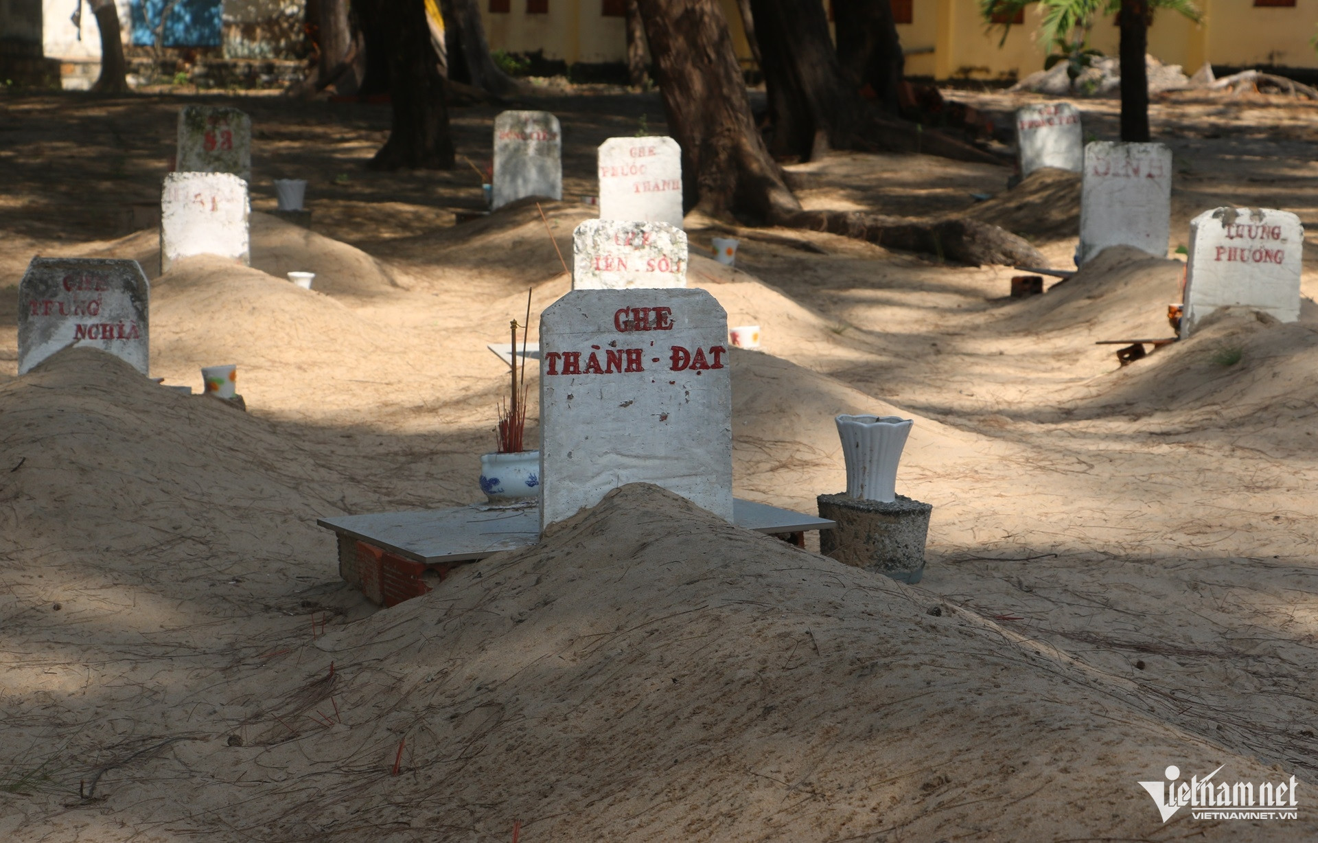 Mỗi ngôi mộ đều ghi tên chủ ghe, "chịu tang" cá Ông như người thân
