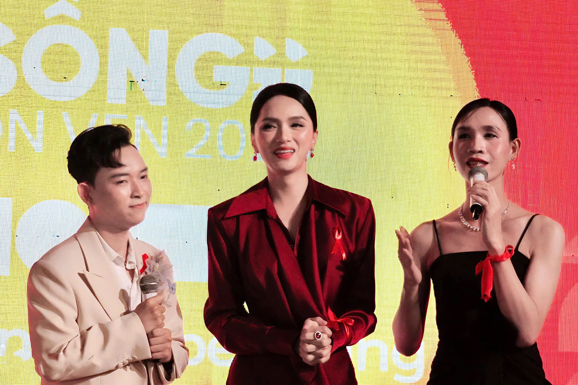 Trong đó, hoa hậu Hương Giang có 10 năm đồng hành với các hoạt động dành cho cộng đồng sống chung với HIV do Hội phòng chống HIV/AIDS TPHCM tổ chức.
