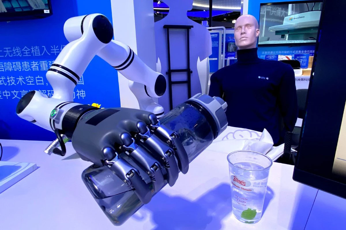 Beinao-1 điều khiển cánh tay robot thực hiện thao tác rót nước. Ảnh: Tân Hoa Xã