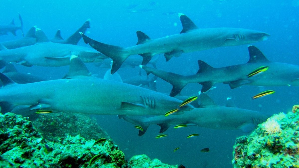 Nơi lý tưởng cho lặn biển và ngắm cá mập. Du khách có thể lặn cùng cá mập đầu búa, rùa biển và đàn cá khổng lồ trong làn nước trong xanh. Ảnh: rezgo.com.
