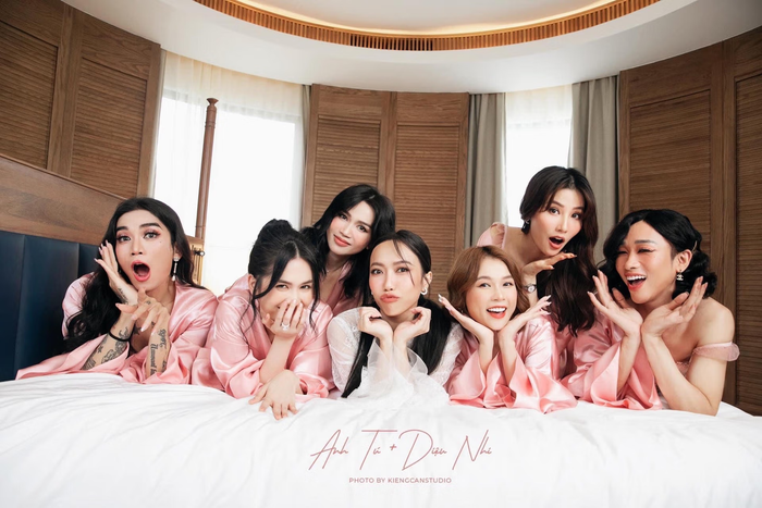 Ngọc Trinh làm phù dâu cho Diệu Nhi cùng với nhiều nghệ sĩ đình đám. Ảnh: Kiengcanstudio