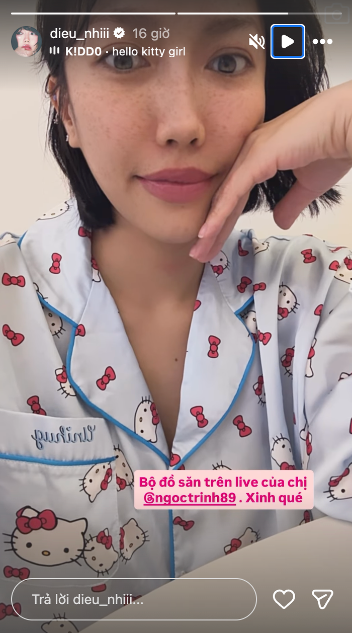 Cụ thể, Diệu Nhi hào hứng chia sẻ việc đã ủng hộ sản phẩm do Ngọc Trinh livestream bán hàng. Sau đó cô nàng còn không ngần ngại gắn thẻ đàn chị thân thiết và thốt lên đầy phấn khích hai chữ "Xinh quá". Khoảnh khắc này ngay lập tức khiến cộng đồng mạng rần rần, bởi từ lâu hai người đẹp không mấy khi tương tác qua lại.