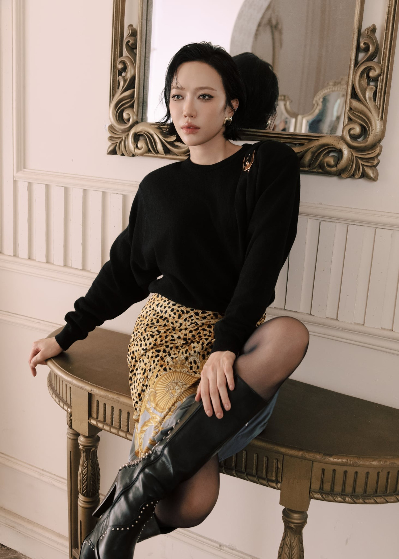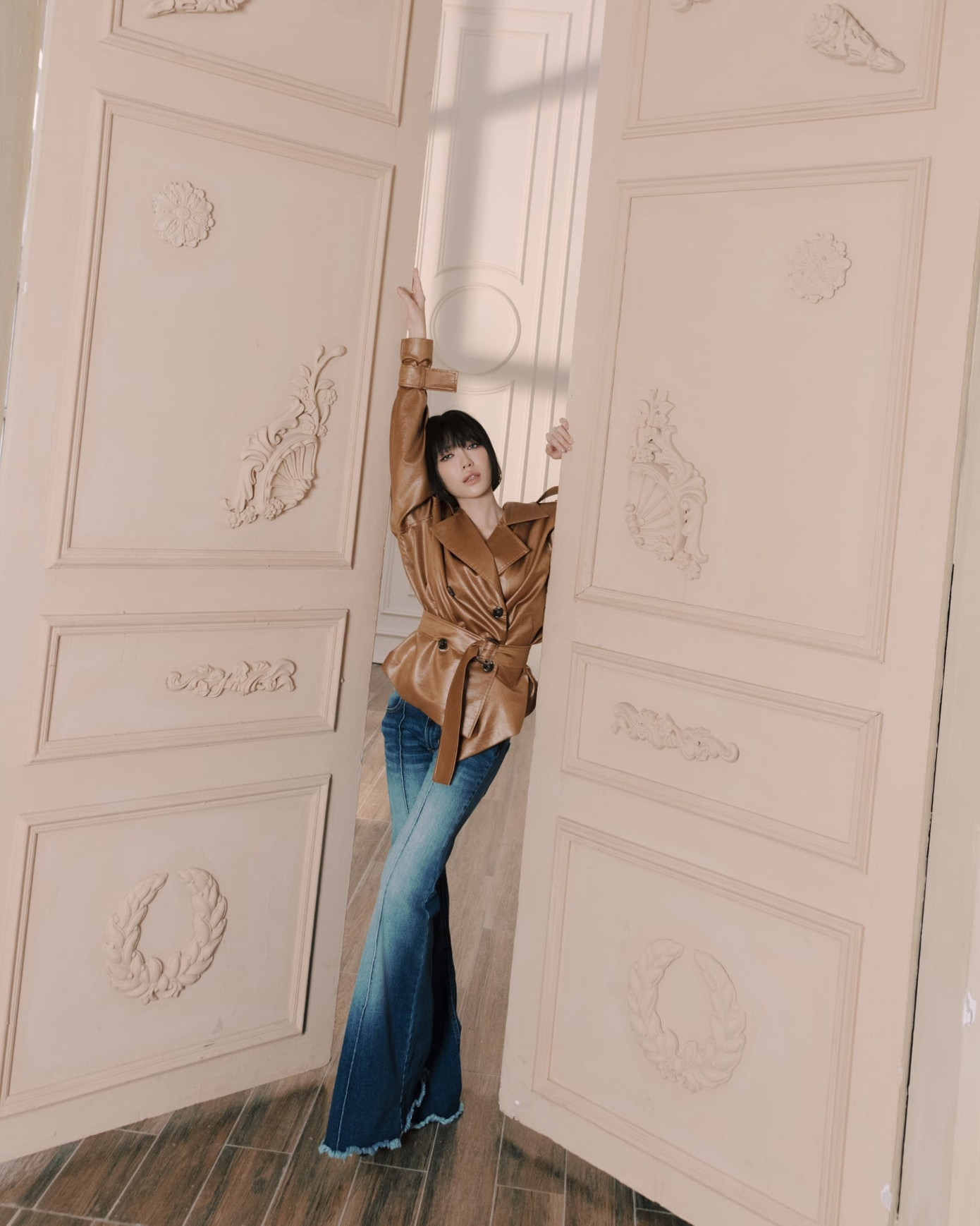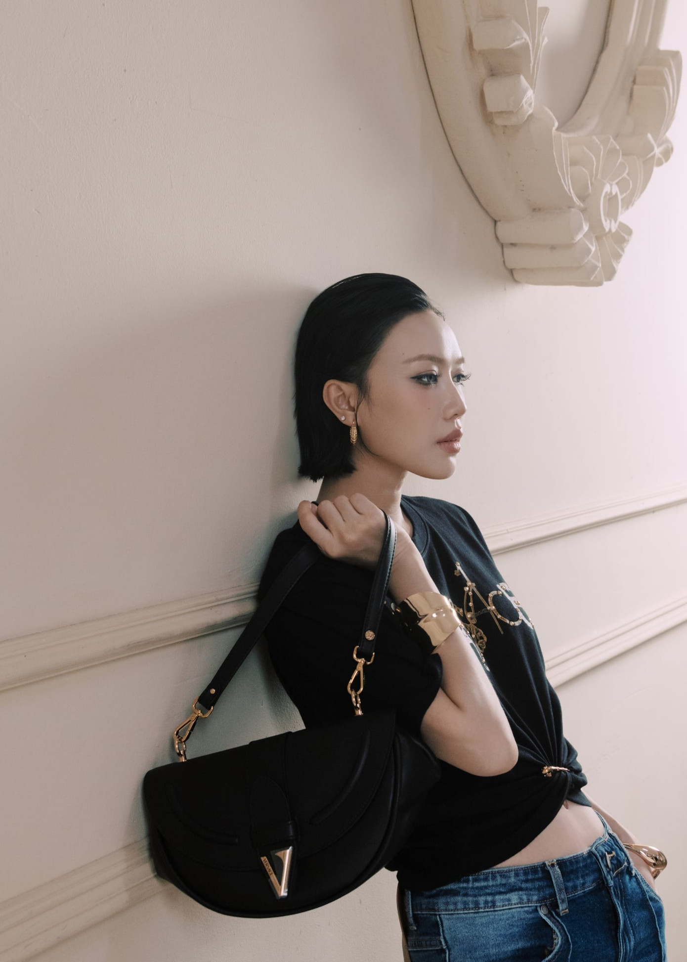 Ngoài ra, sắc đen được nữ diễn viên lựa chọn xuyên suốt bộ ảnh. Tuy nhiên, sự kết hợp đa dạng khi phối lưới, khi kết hợp da beo, lúc lại phối jeans khiến Diệu Nhi trở nên thú vị hơn hẳn. Tạm gác lại hình ảnh năng động cá tính, Diệu Nhi thời điểm hiện tại hướng mình đến sự trưởng thành, thanh lịch, tinh tế.