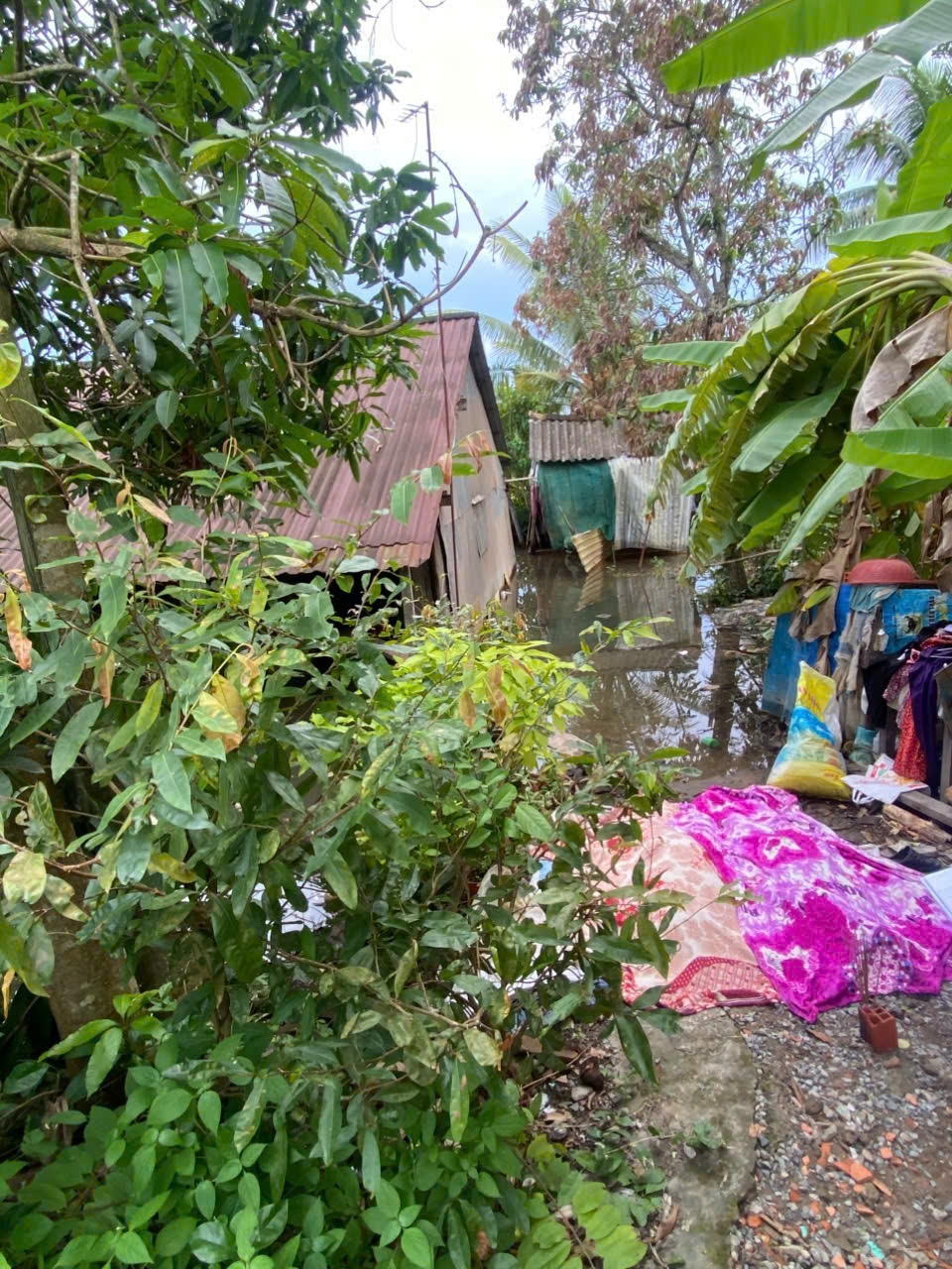 Khu vực căn nhà thô sơ bị ngập nước có thể do điện giật dẫn đến 2 người tử vong