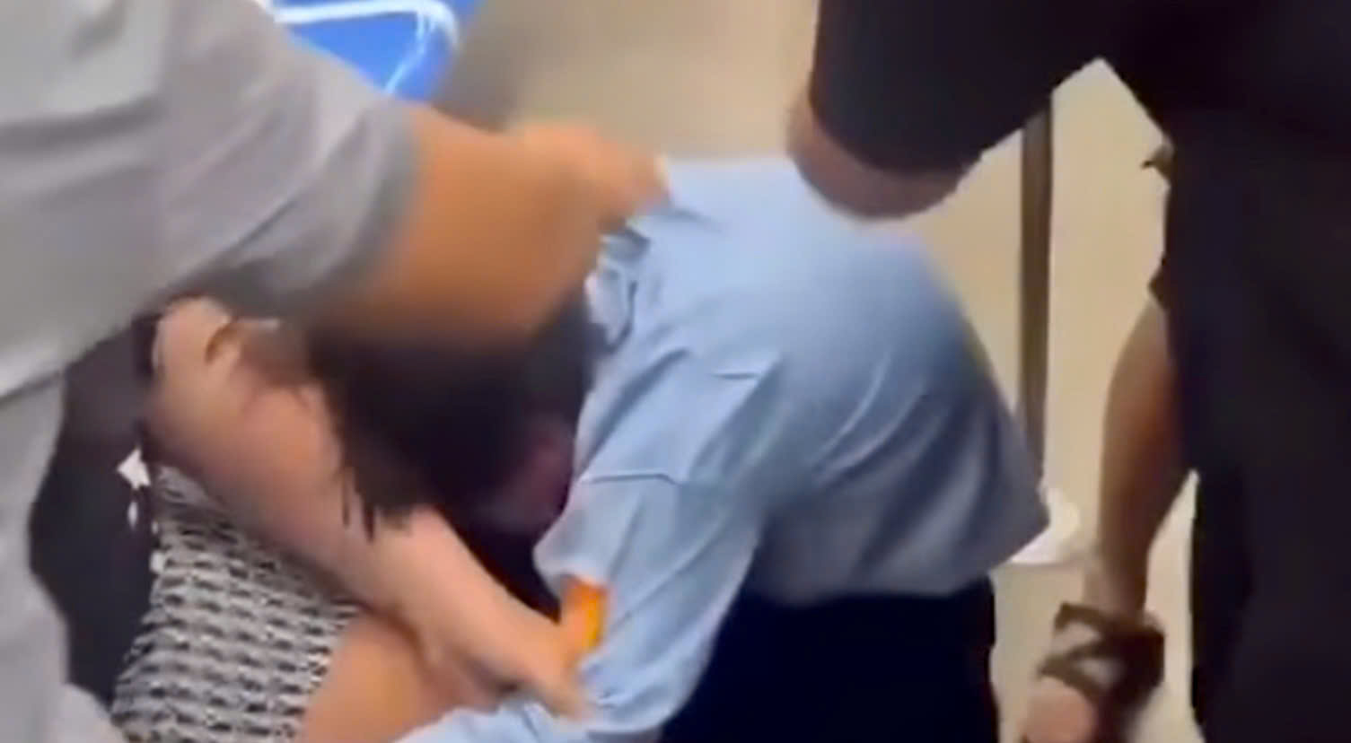 Nam bảo vệ bị đánh trên tàu Metro số 1. Ảnh cắt từ clip