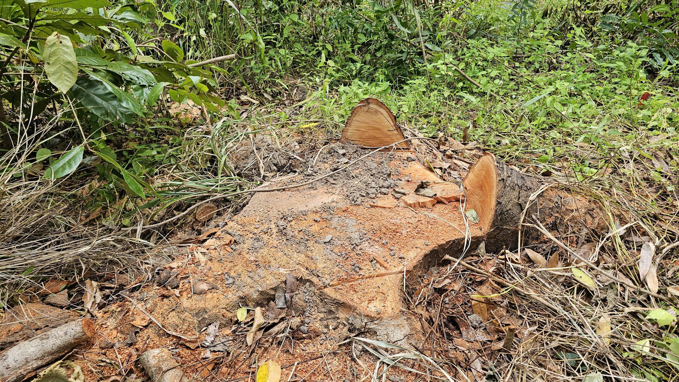 Gốc cây còn dấu vết cưa cắt.
