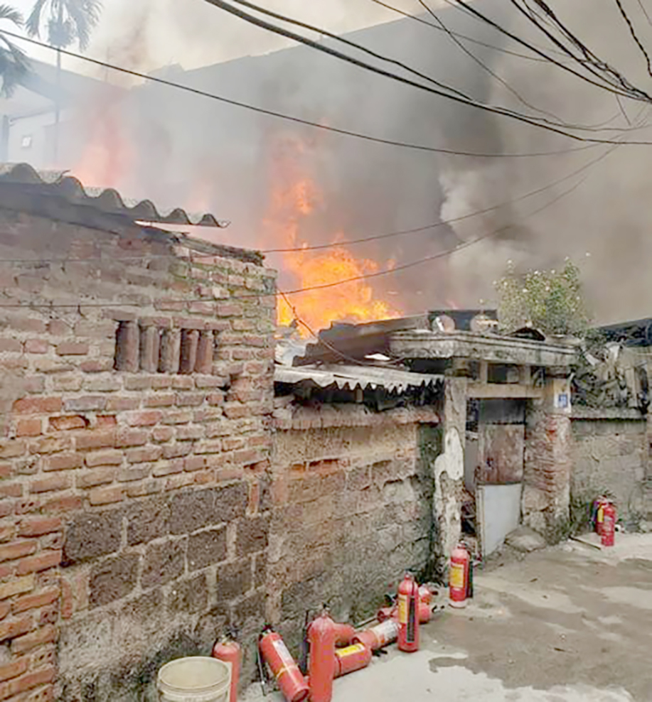 Khi lực lượng chữa cháy có mặt, lửa cháy gần 30 phút, bao trùm toàn bộ ngôi nhà một tầng có kết cấu tạm với diện tích khoảng 100m2. Đây là nơi để củi khô, phế liệu và đồ dùng sinh hoạt.