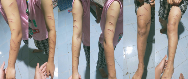 Trên người cháu N. có rất nhiều vết thương.
