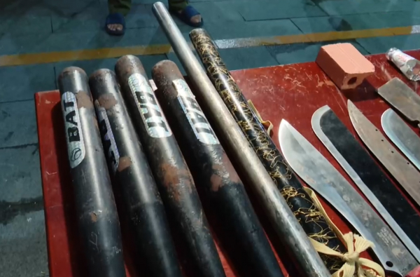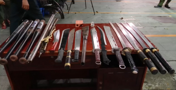 Một số hung khí, mã tấu, dao, gậy sắt các đối tượng sử dụng để đánh nhau.