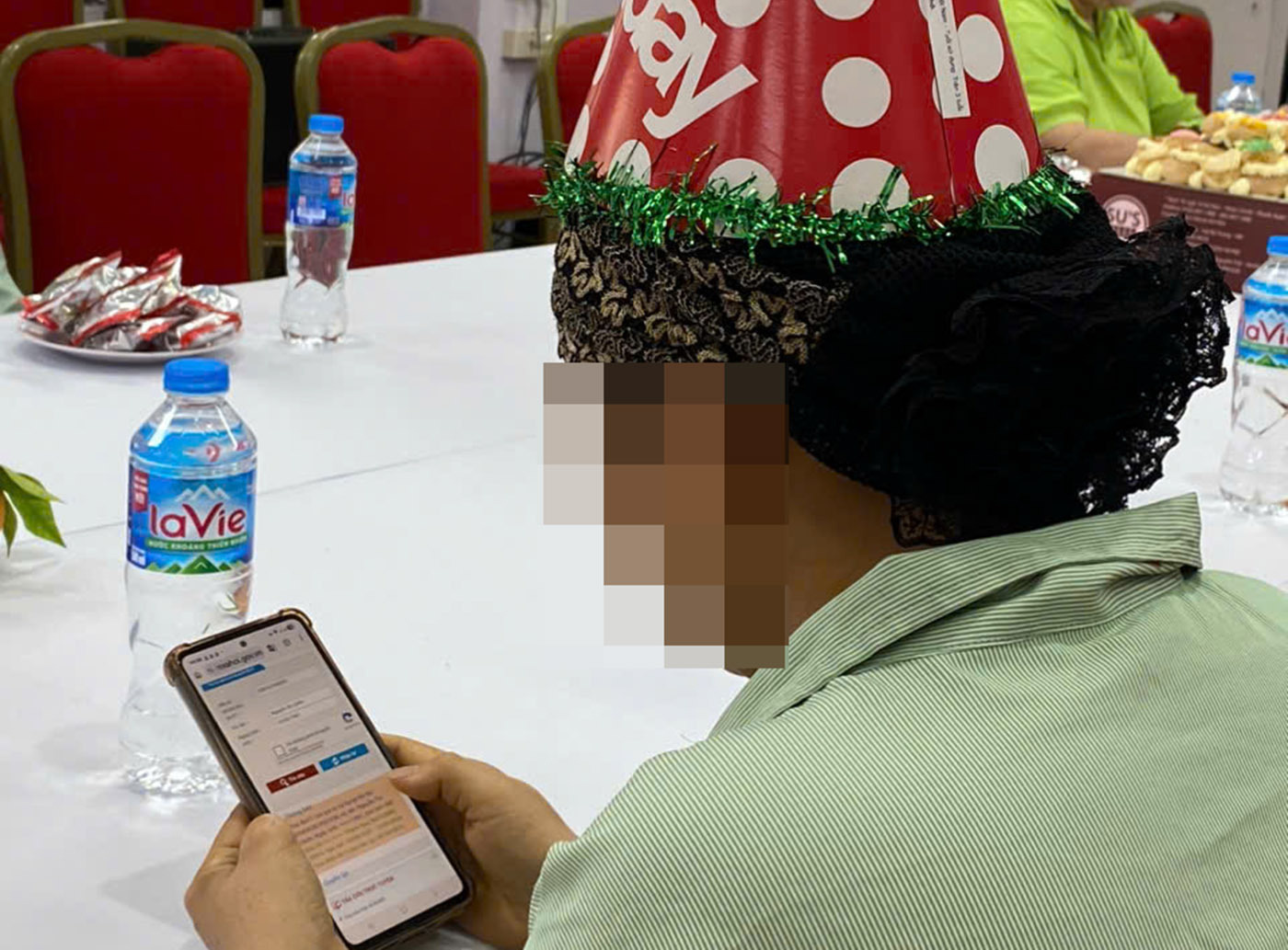 Người bệnh phấn khởi khi được sinh nhật tại BV Ung bướu Hà Nội.