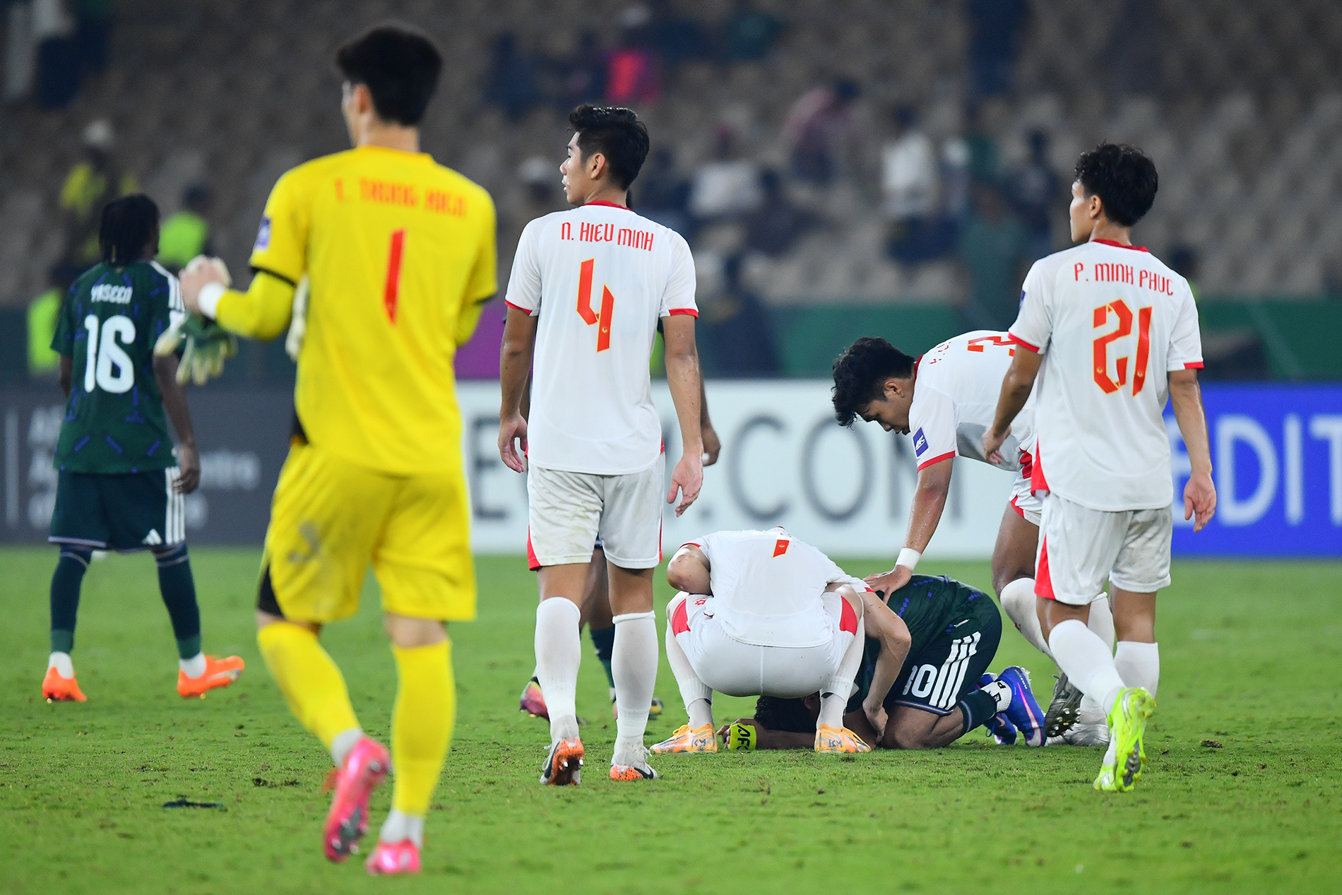 Các cầu thủ U23 Việt Nam có hành động đẹp khi động viên đồng nghiệp bên phía U23 Saudi Arabia.