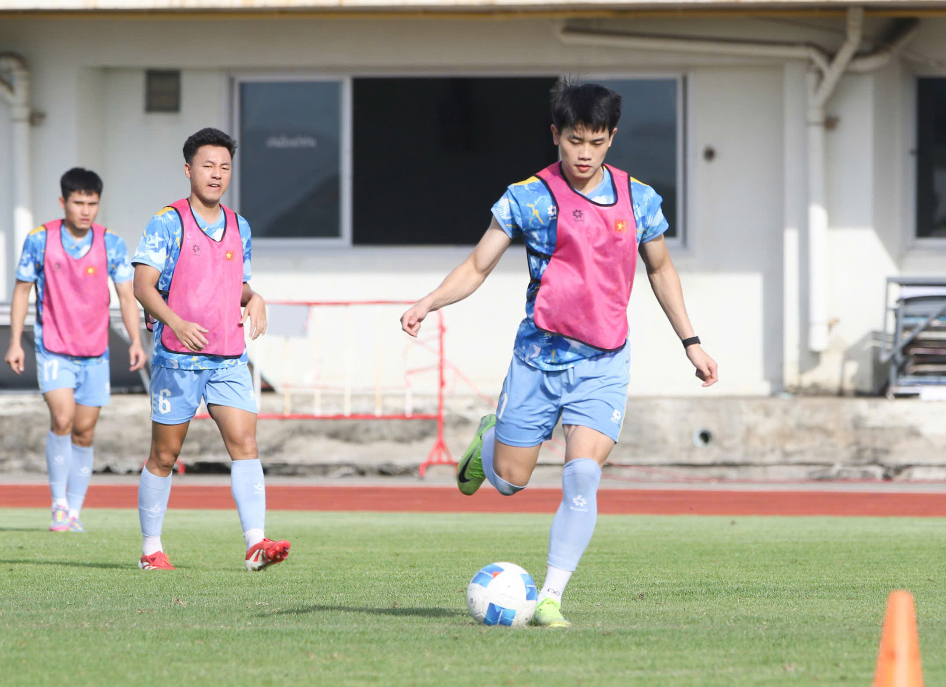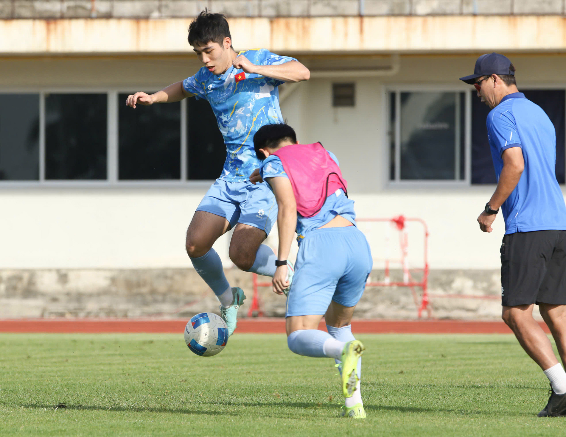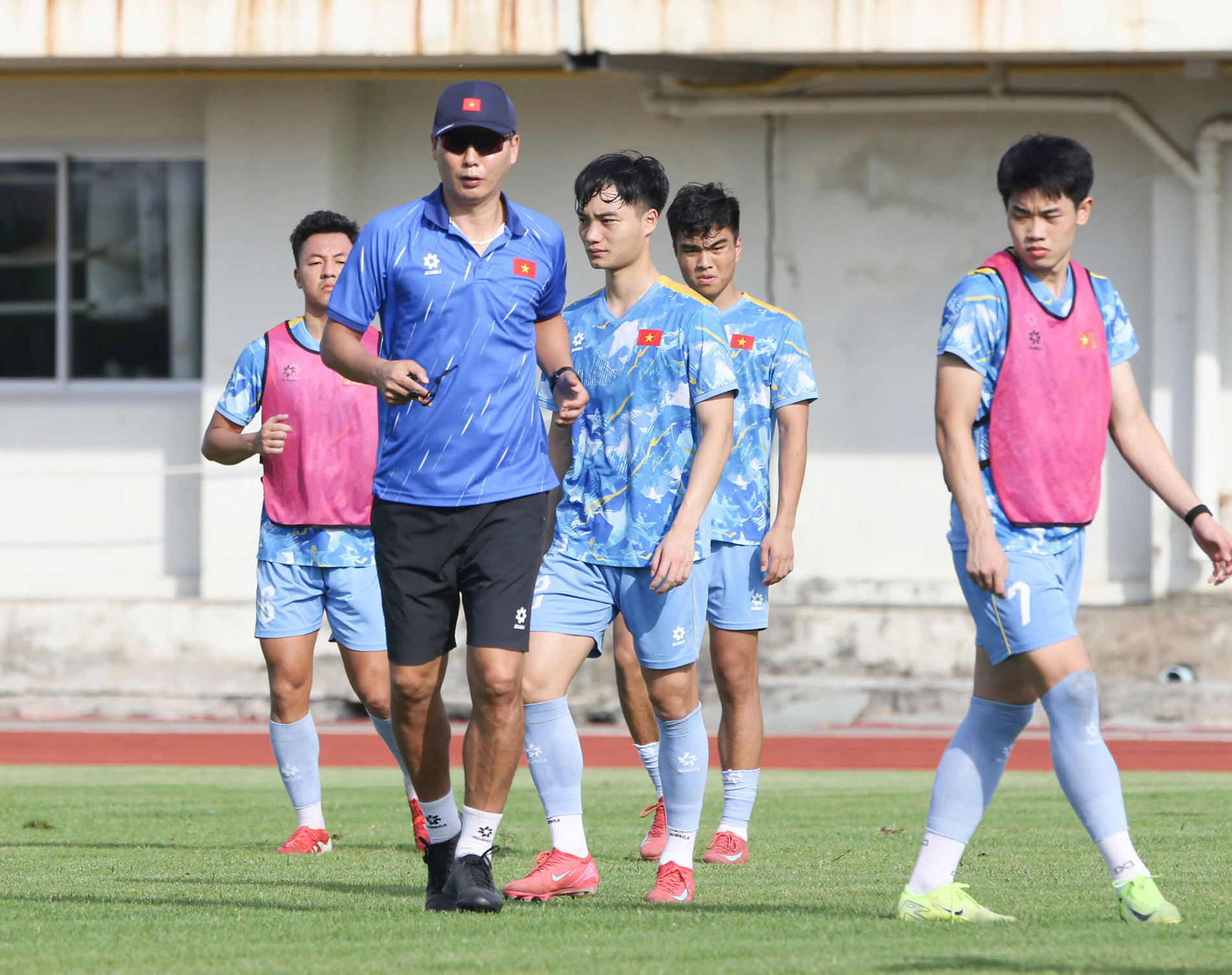 Trời nắng nóng nhưng thầy trò HLV Kim Sang Sik đều rất quyết tâm.