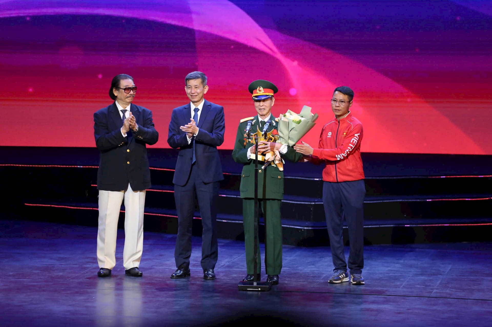 Hạng mục Thành tựu trọn đời vinh danh cựu vận động viên, huấn luyện viên bắn súng – Trung tá Cung Bỉnh Di (thứ 2 bên phải). Ảnh Thuần Thư