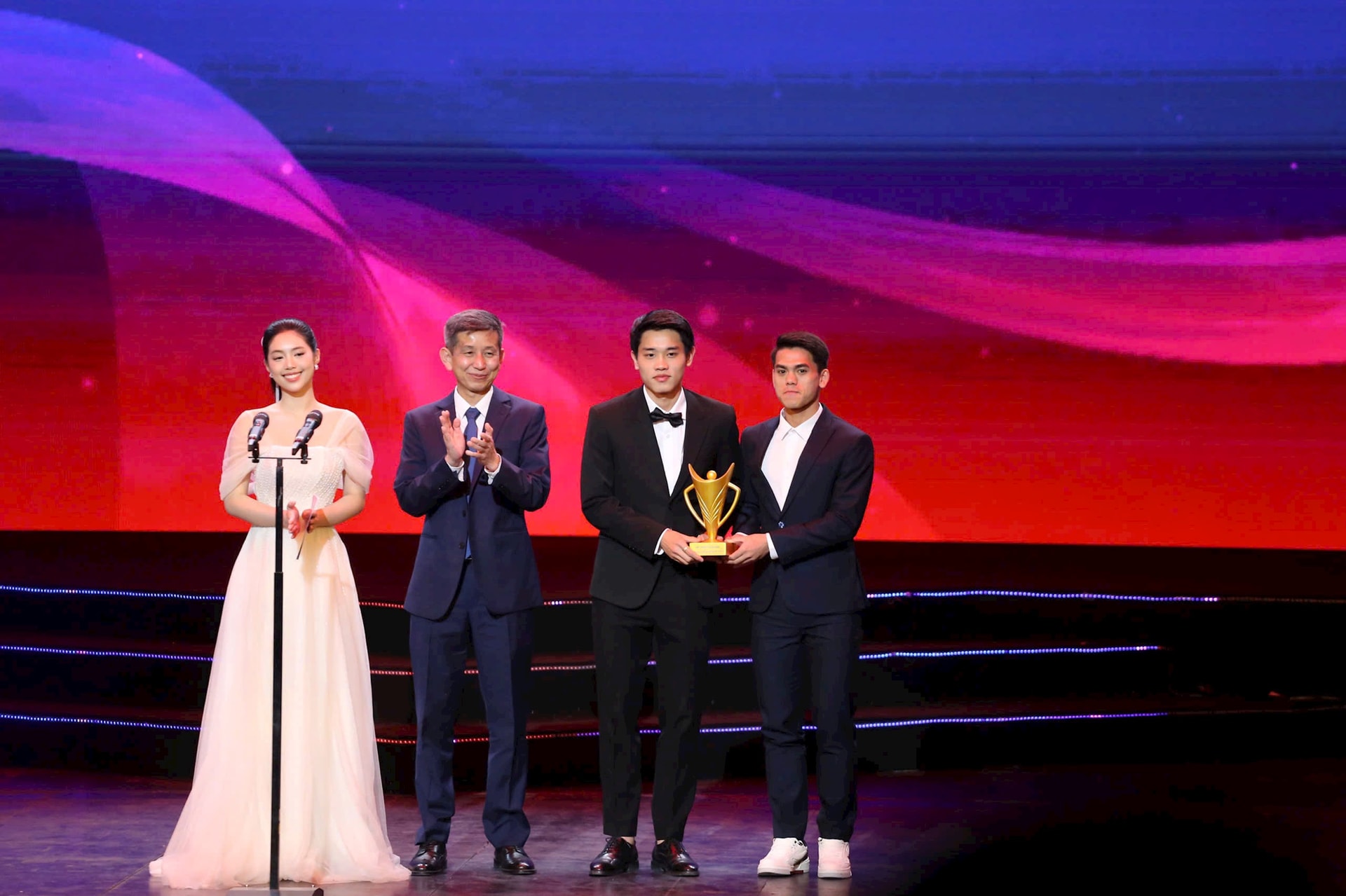 Đình Bắc, Văn Khang đại diện cho U22 Việt Nam nhận giải thưởng "Đội tuyển của Năm". Ảnh: Thuần Thư