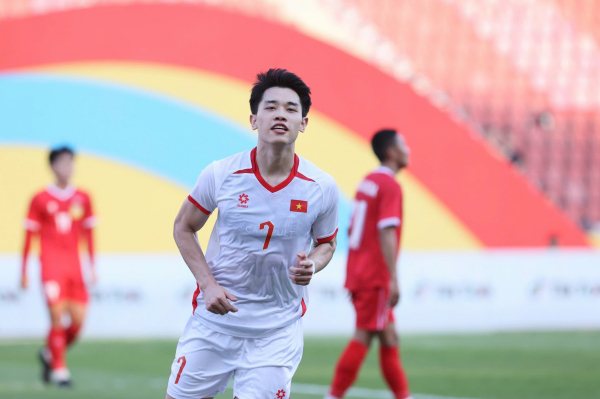 Số 7 của U22 Việt Nam ăn mừng bàn mở tỷ số.