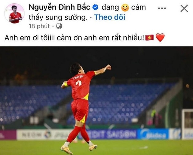 Ngay khi tiếng còi kết thúc trận đấu vang lên, giải tỏa áp lực tâm lý nặng nề, Đình Bắc đã lao vào sân ôm chầm lấy các đồng đội để ăn mừng. Trên mạng xã hội, anh đã gửi đi thông điệp ngắn gọn nhưng đầy xúc động: "Anh em ơi, tôi cảm ơn anh em rất nhiều". Đây được xem là lời xin lỗi và tri ân chân thành dành cho nỗ lực của tập thể đã "sửa sai" cho tấm thẻ đỏ của mình.