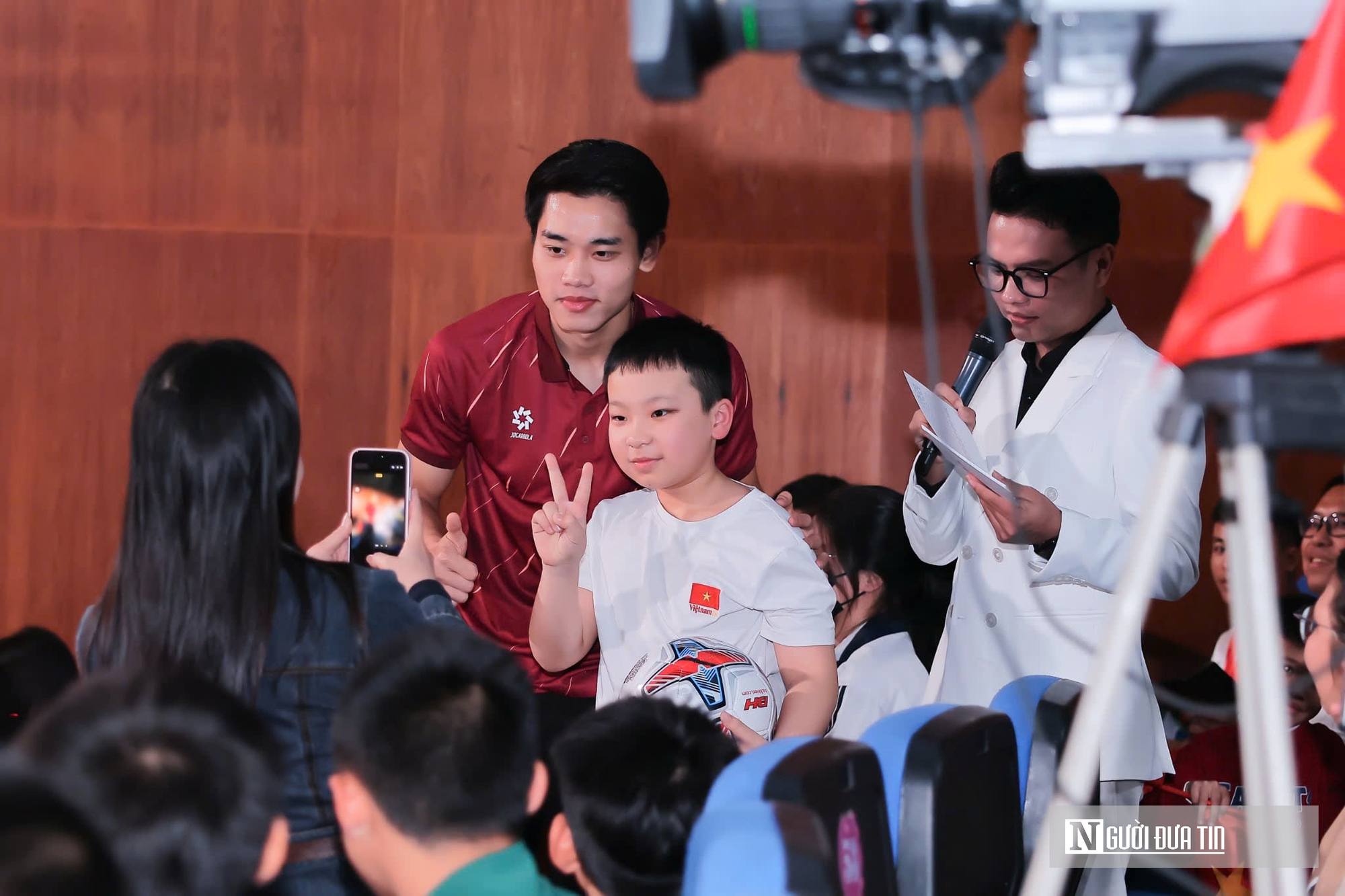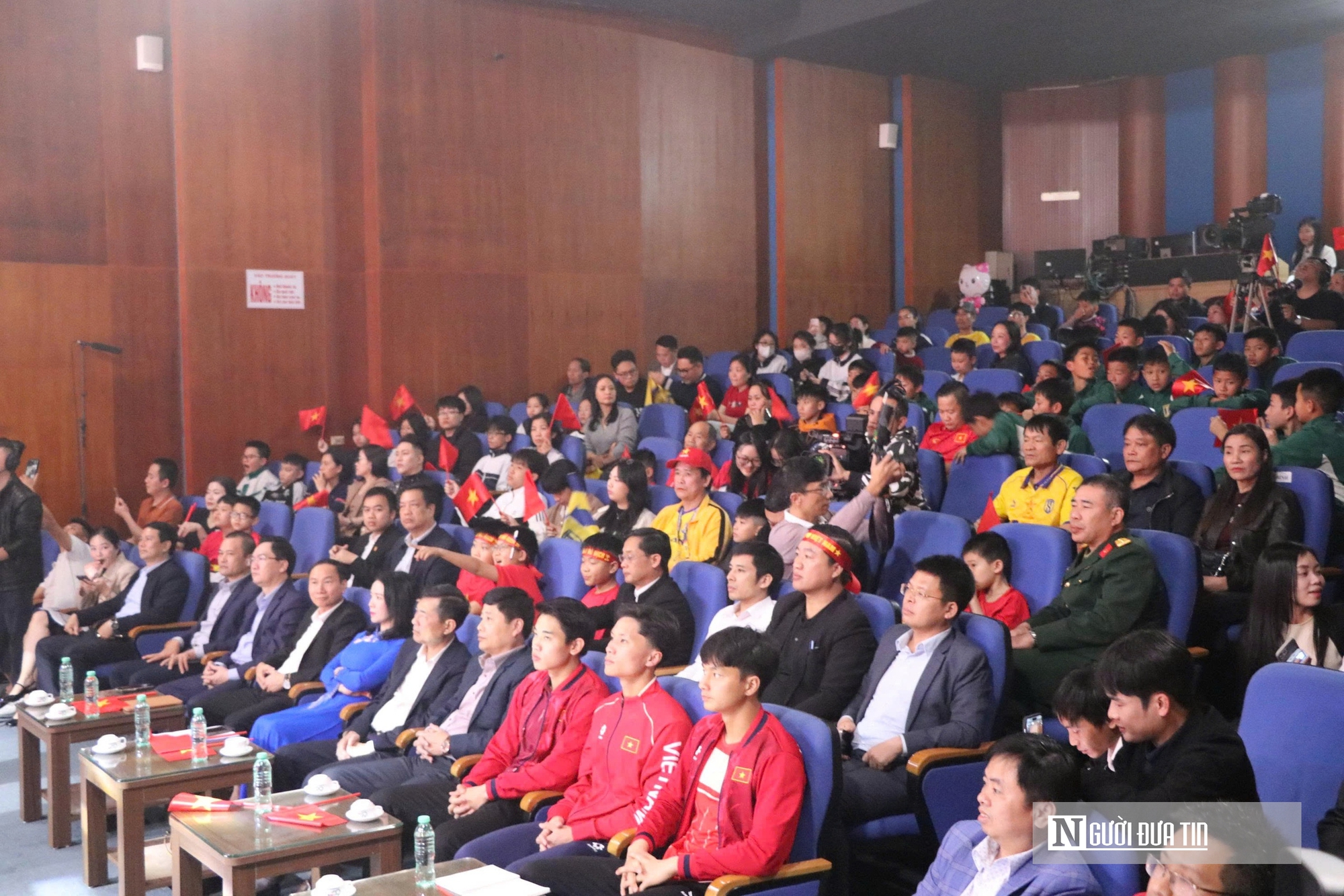 Phát biểu tại buổi giao lưu, bà Trần Thị Mỹ Hạnh - Giám đốc Sở Văn hóa, Thể thao và Du lịch Nghệ An cho biết, thành tích đội tuyển U23 đạt được không chỉ là kết quả của tài năng, sự khổ luyện và tinh thần đoàn kết, mà còn là minh chứng sinh động cho ý chí, bản lĩnh và khát vọng vươn lên của tuổi trẻ Việt Nam. "Nghệ An rất tự hào khi trong màu áo U23 quốc gia có ba cầu thủ trưởng thành từ mảnh đất giàu truyền thống cách mạng và thể thao, nơi luôn nuôi dưỡng tinh thần vượt khó, ý chí kiên cường và khát vọng cống hiến. Thành công của các em hôm nay là niềm tự hào không chỉ của bóng đá nước nhà, mà còn là niềm vinh dự lớn lao đối với quê hương Nghệ An", bà Hạnh nói.