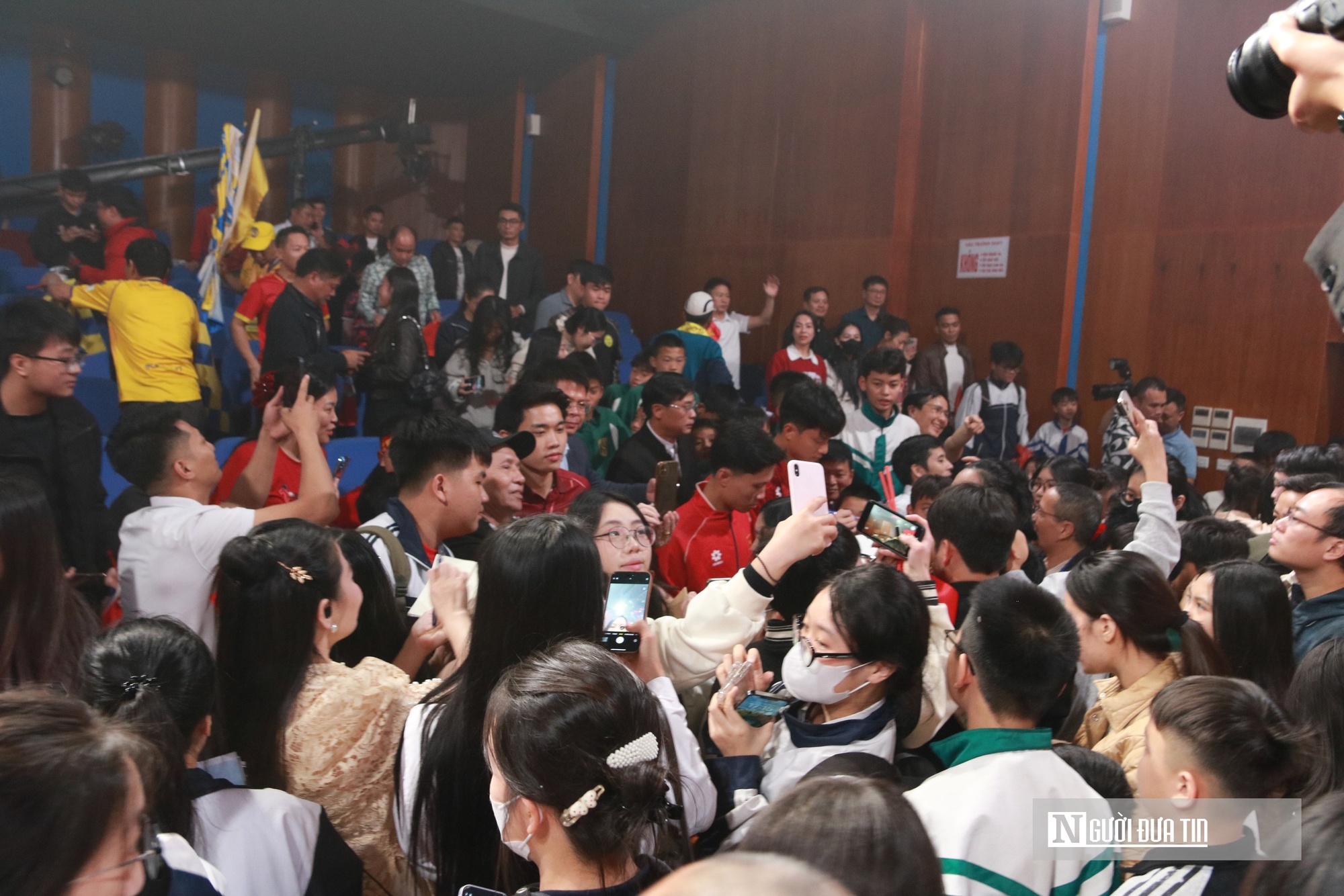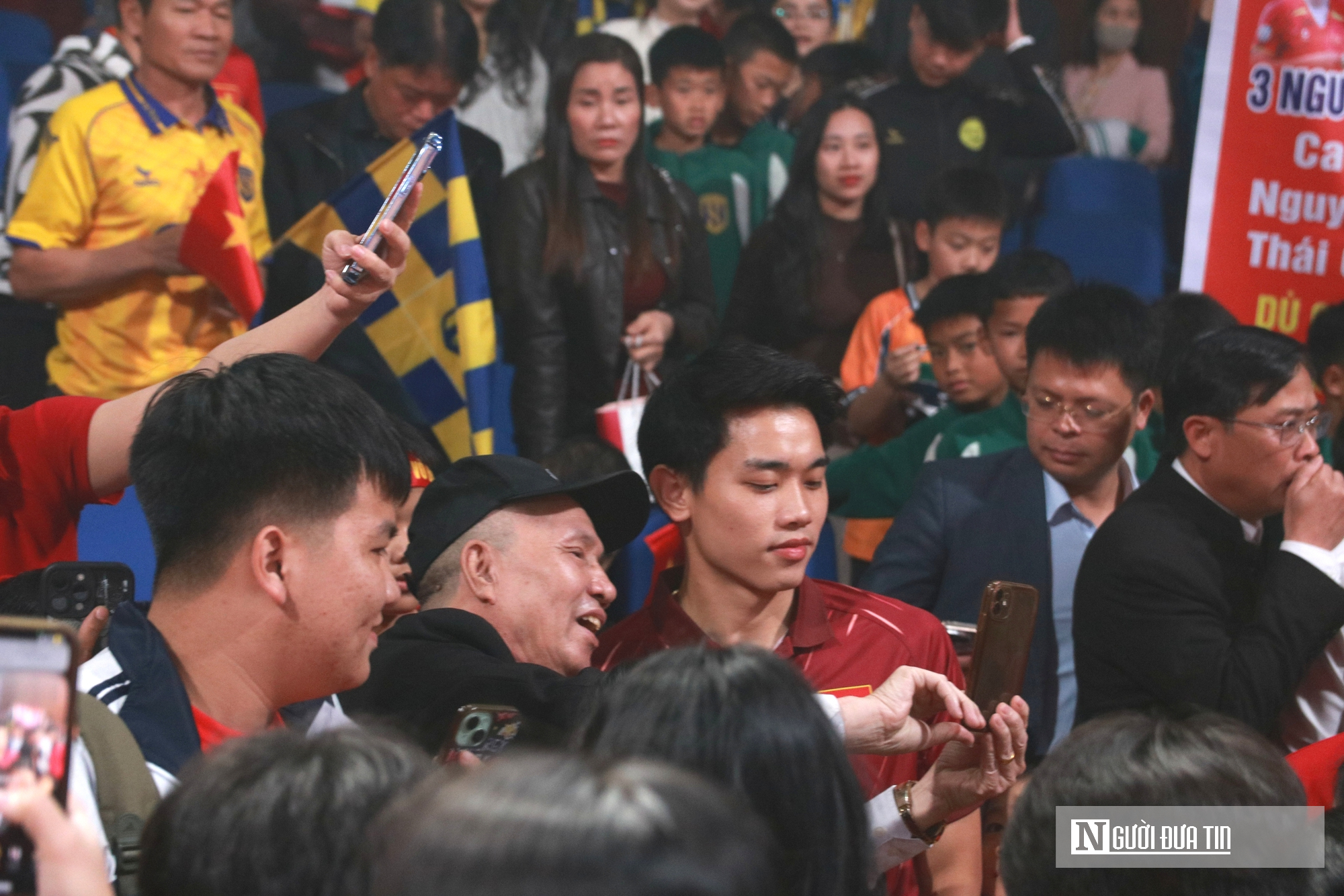 Rất đông khán giả vây kín ba cầu thủ Đình bắc, Văn Bình và Quốc Cường để xin chữ ký và chụp hình lưu niệm.