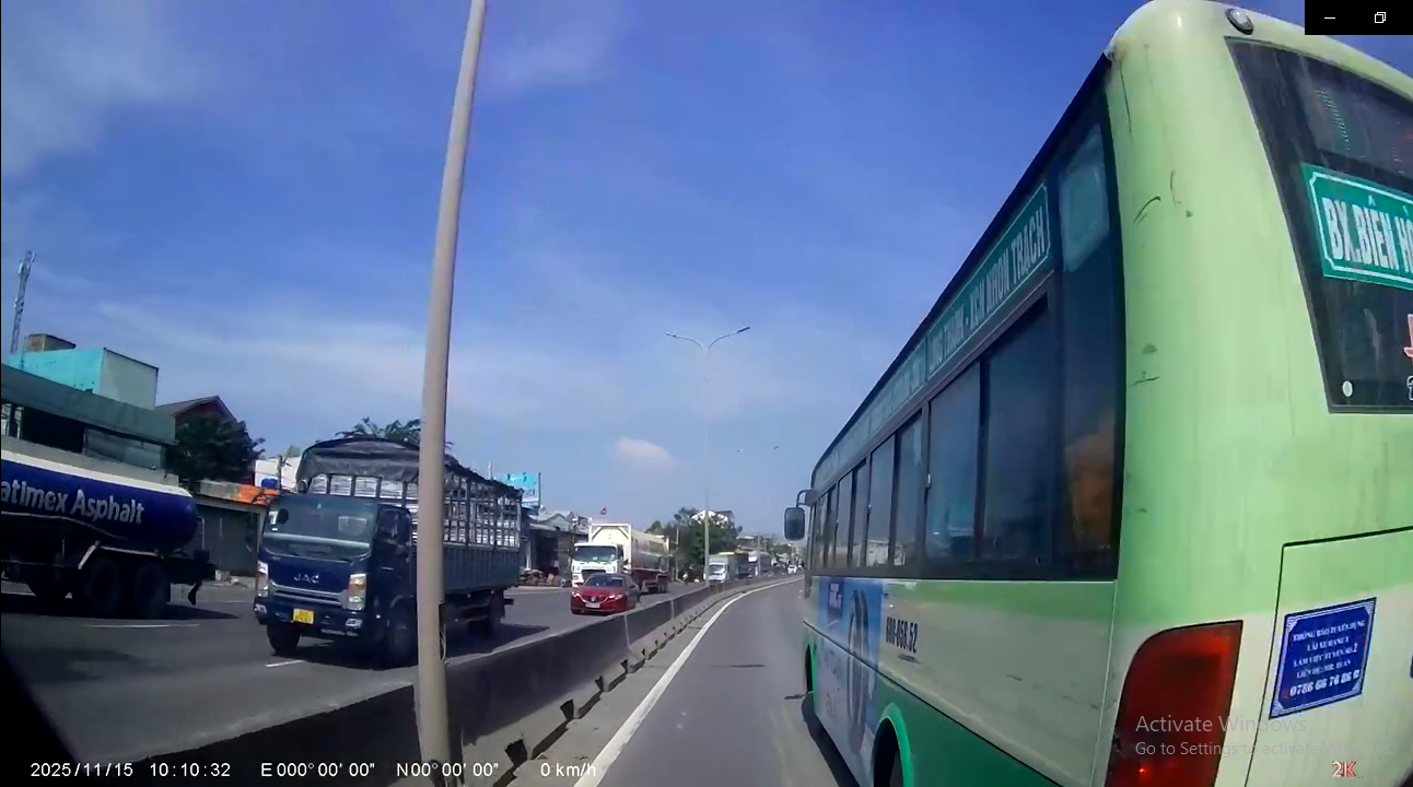 Video tài xế điều khiển xe buýt vượt ẩu trên Quốc lộ 51 ngày 15-11-2025 do camera ghi lại