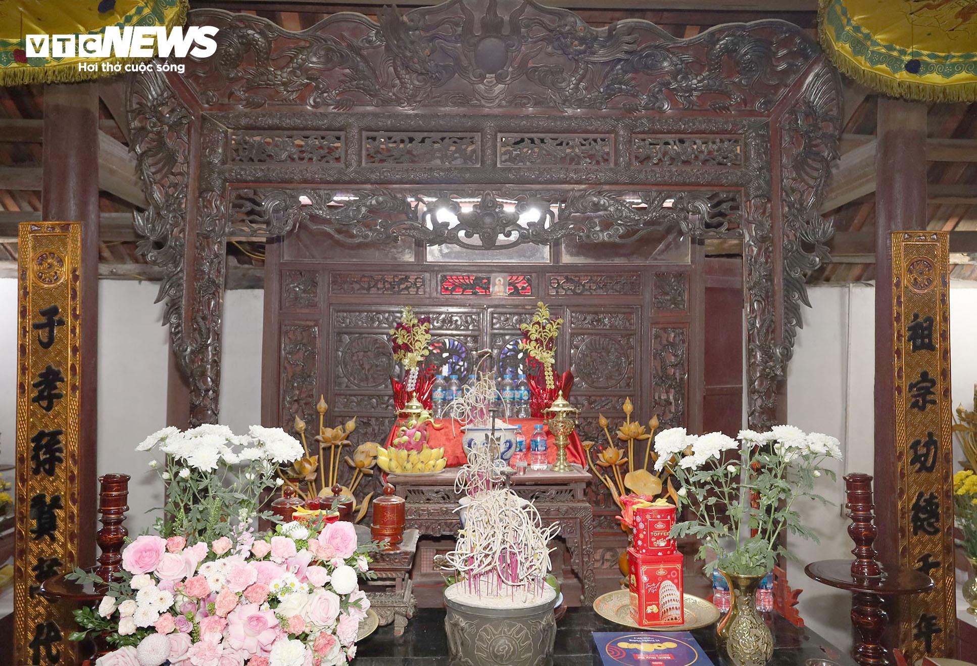 Hậu cung thờ Nữ tướng Lê Chân, trong khám thờ đặt ảnh khắc họa chân dung Nữ tướng Lê Chân chụp lại theo thần tượng Bà vào đầu thế kỷ XX và mũ phượng của Bà.