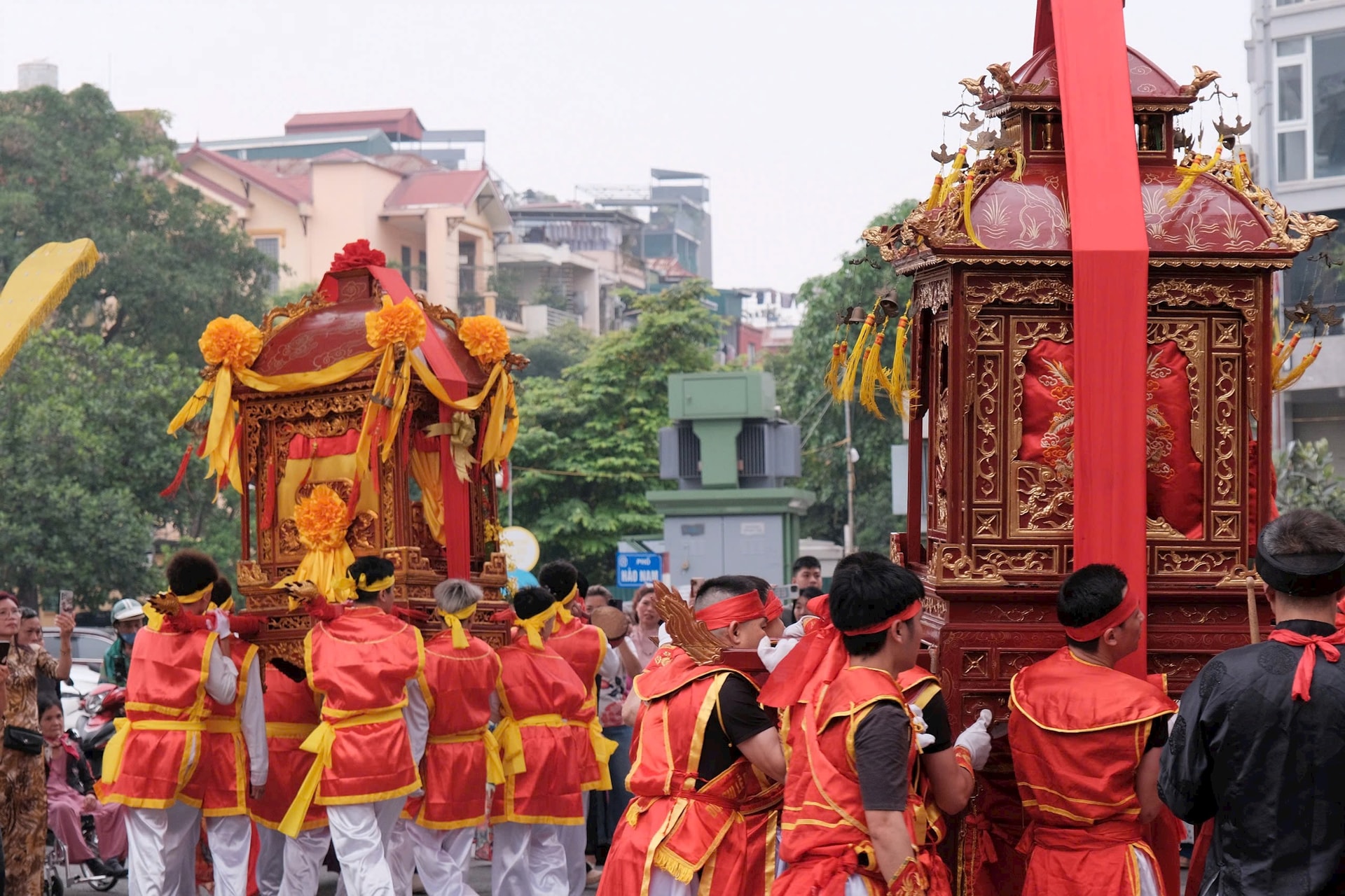 Nghi lễ rước kiệu được tái hiện tại lễ hội.