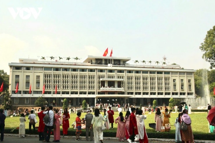 Lượng du khách mặc áo dài đến thăm dinh Độc Lập chiếm tỉ lệ lớn trong dịp này.