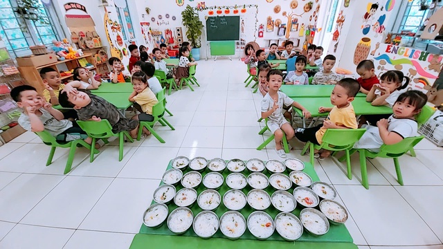 Bước 5: Chế biến, chia suất và phục vụ, giám sát chất lượng bữa ăn: bếp ăn thực hiện chế biến theo đúng công thức và định lượng đã duyệt, đảm bảo quy trình bếp ăn một chiều để tránh nhiễm khuẩn chéo. Đồng thời, chuyên gia dinh dưỡng và cán bộ y tế trường học kiểm tra ngẫu nhiên về cảm quan, khẩu vị và vệ sinh.