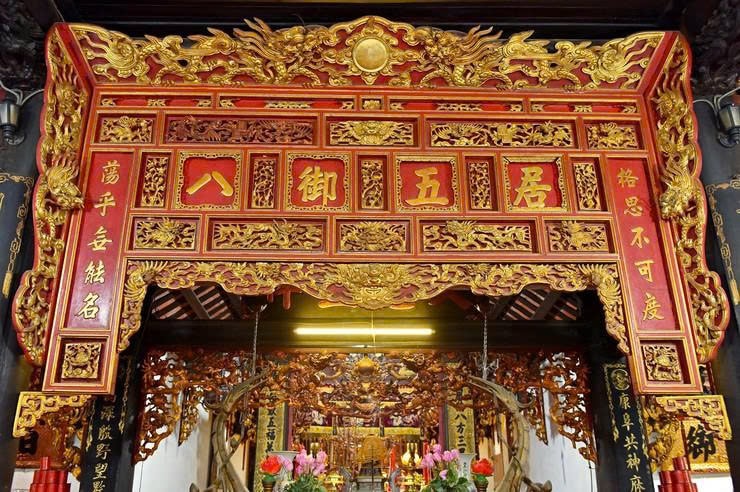 Không gian đình mang đậm dấu ấn kiến trúc truyền thống Bắc Bộ với kết cấu gỗ, mái ngói cổ kính, cùng các chi tiết chạm khắc tinh xảo. Mỗi gian thờ, mỗi bức hoành phi, câu đối đều là những “lớp trầm tích” văn hóa, phản ánh chiều sâu lịch sử của vùng đất từng nổi danh khoa bảng Thăng Long.