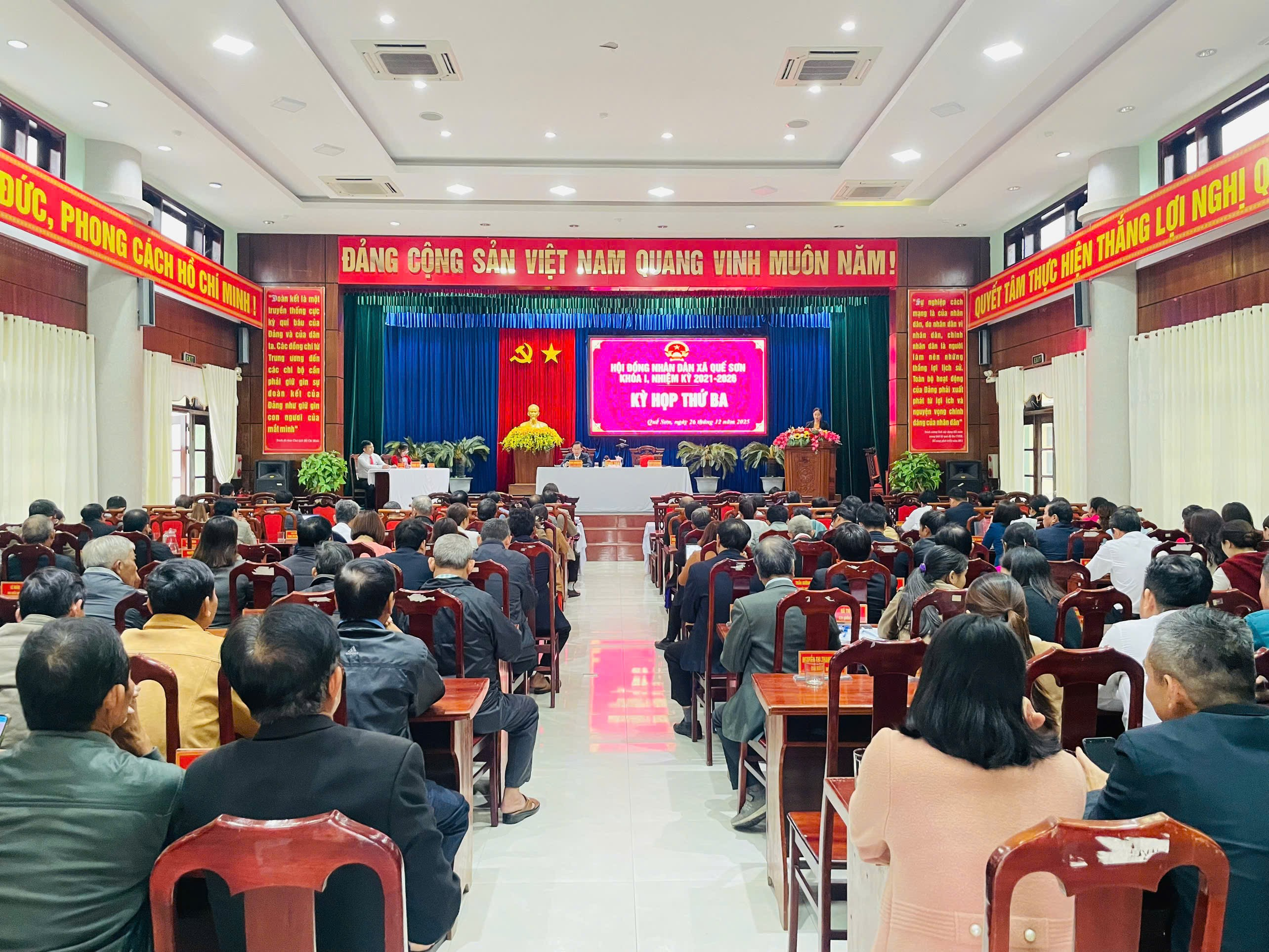 Kỳ họp thứ Ba, HĐND xã Quế Sơn Khóa I, nhiệm kỳ 2021 - 2026. Ảnh: Minh Châu
